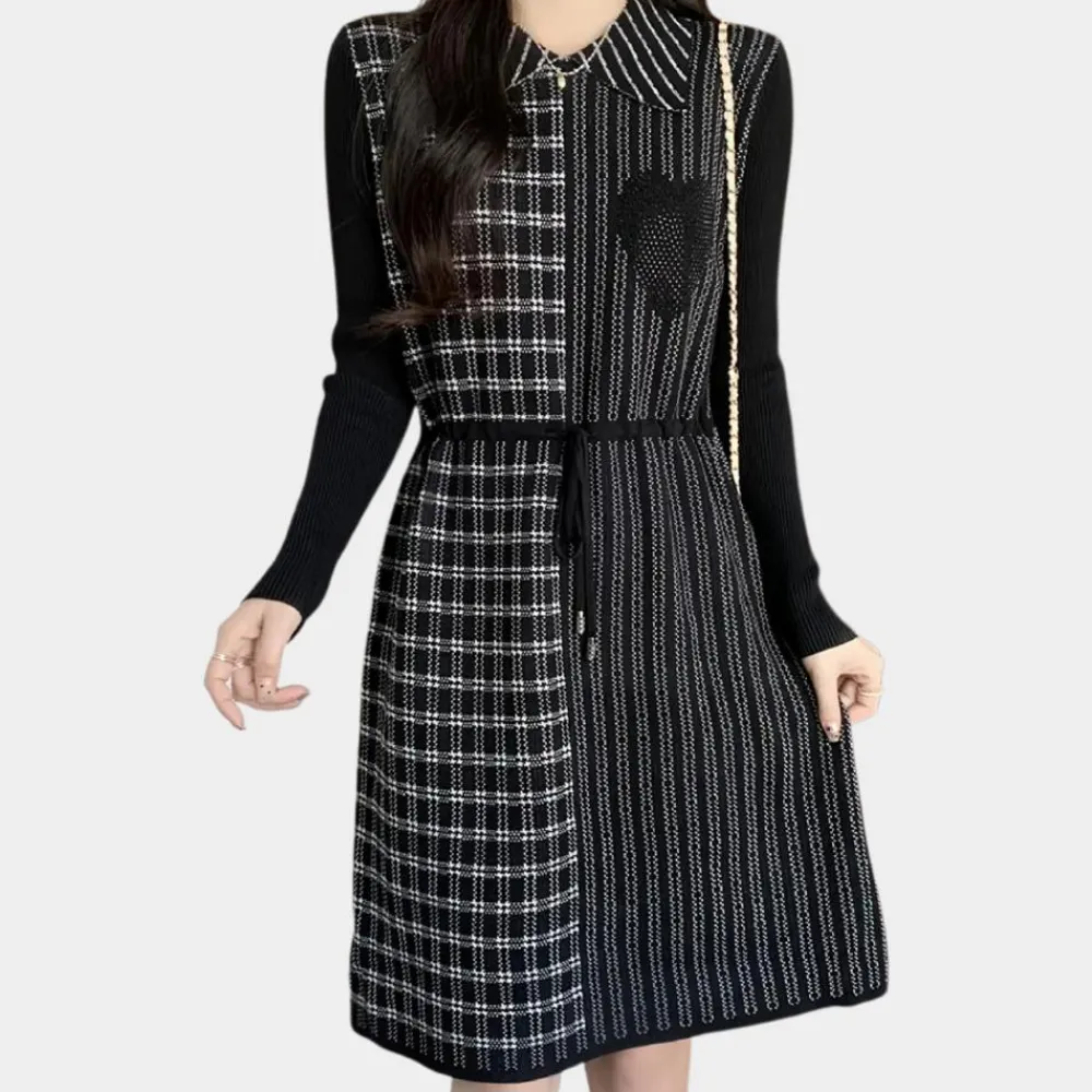 Deze jurk heeft een klassiek geruit ontwerp, dat een vleugje verfijning aan je garderobe toevoegt. Met de flatterende snit en comfortabele pasvorm is het geweldig voor zowel casual als formele gelegenheden.