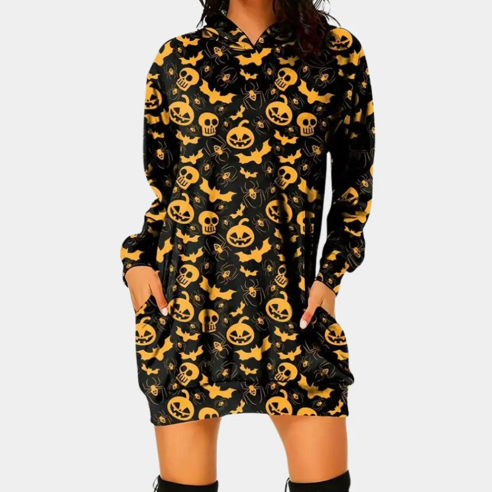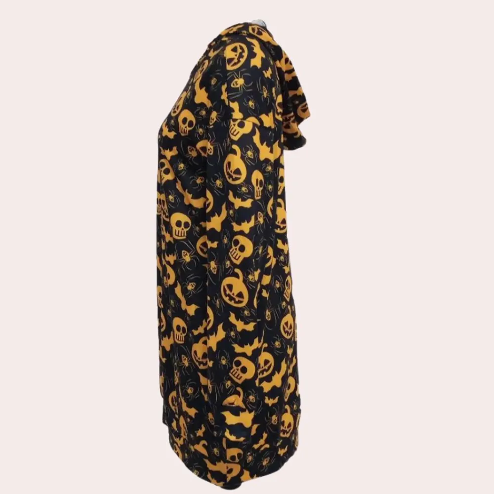 Ontdek de Csilla Comfortabel Halloween Mini Jurkje met Capuchon, waarin comfort en stijl samenkomen. Deze jurk is gemaakt van ademend polyester en is perfect voor warme lentedagen en zomeravonden.