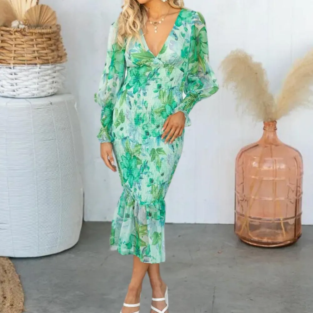Je kunt de Delfina Prachtige Bloemenprint Jurk met Plooien overdag en ’s avonds dragen. Combineer met hakken en sieraden voor een formele look, of draag het met sneakers voor een casual dagje uit met vrienden of familie.