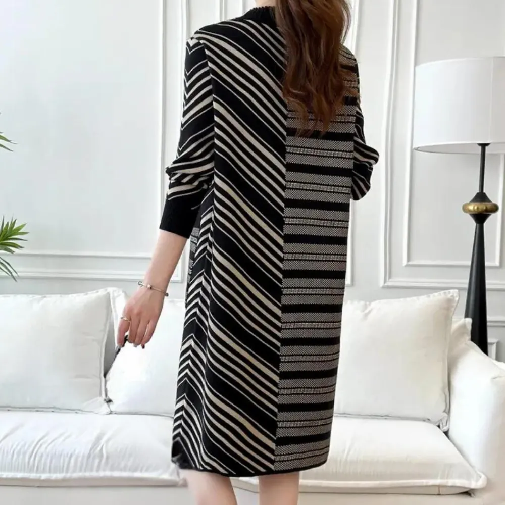 De DIANELLA – Geraffineerde Jurk voor Dames is de ideale combinatie van ontspannen elegantie en veelzijdigheid. Met zijn gestreepte patroon en ruime pasvorm is het een onmisbaar onderdeel van je garderobe, perfect voor zowel casual als formele gelegenheden.