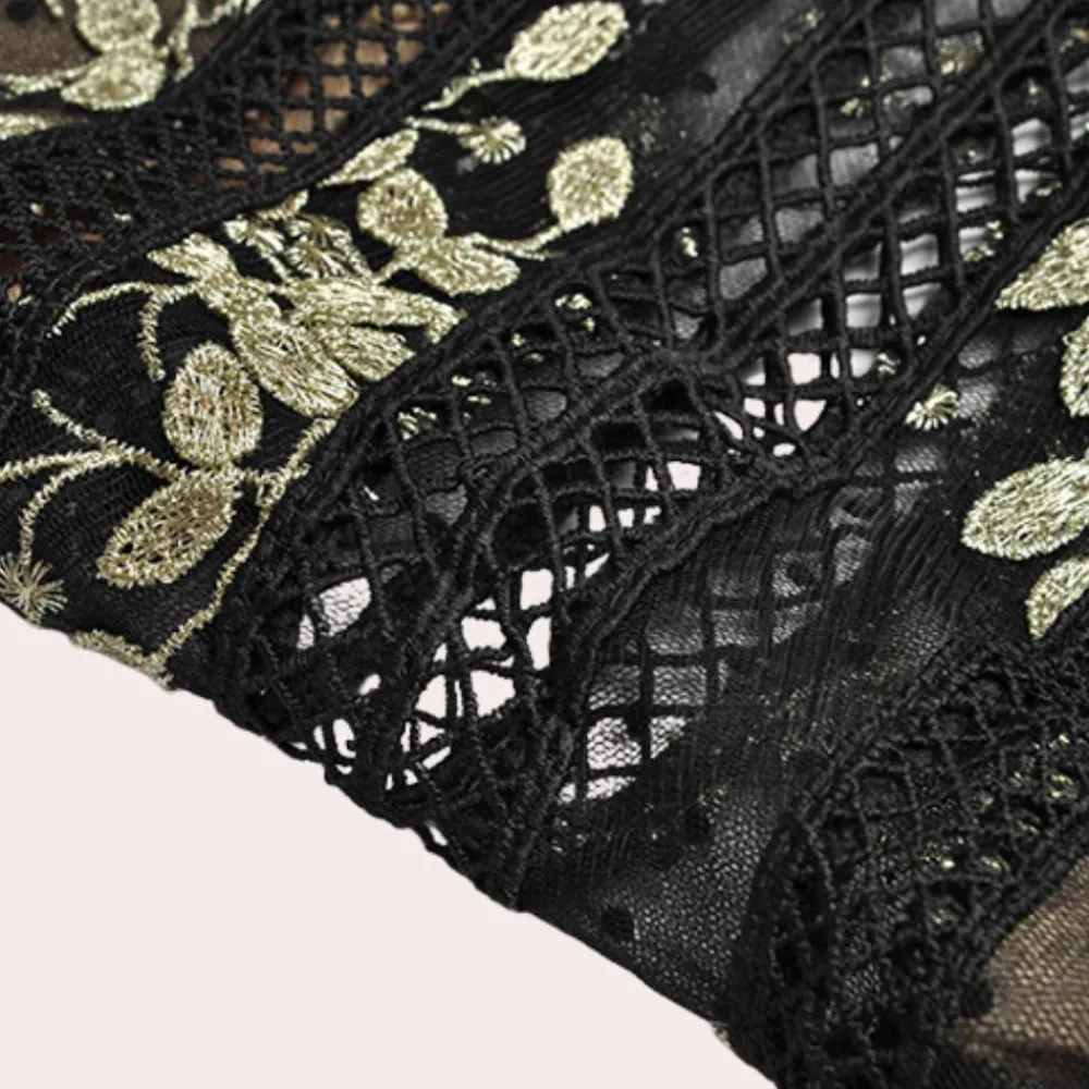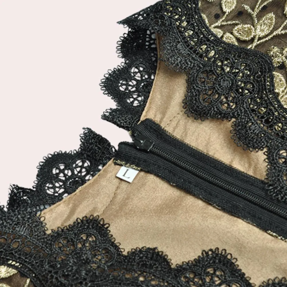 Ontdek Eleanora – een modieuze kanten jurk met v-hals voor dames, een betoverende mix van elegantie en comfort. Met zorg vervaardigd, biedt deze jurk een tijdloos ontwerp dat moeiteloos van dag naar avond overgaat.