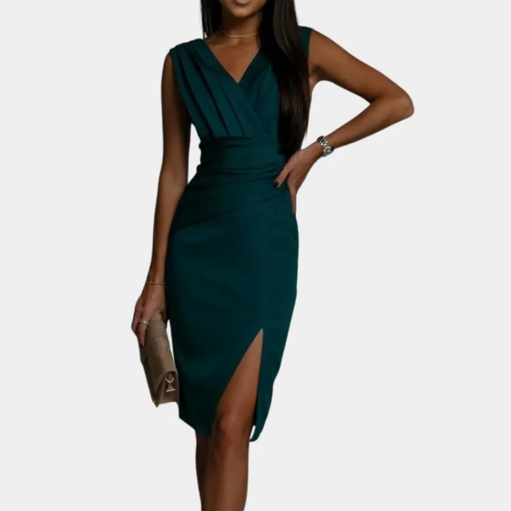 Deze jurk is gemaakt van hoogwaardige materialen en biedt een comfortabele pasvorm die de hele dag gedragen kan worden, terwijl hij toch een vleugje glamour toevoegt aan elke gelegenheid. Of het nu gaat om een formele aangelegenheid of een avondje uit, de Elegante damesjurk zal ongetwijfeld bewonderende blikken trekken. Combineer het met hakken en subtiele sieraden voor een tijdloze en verfijnde look die indruk maakt. Met zijn tijdloze charme en moderne flair is deze jurk een must-have voor elke modebewuste vrouw.