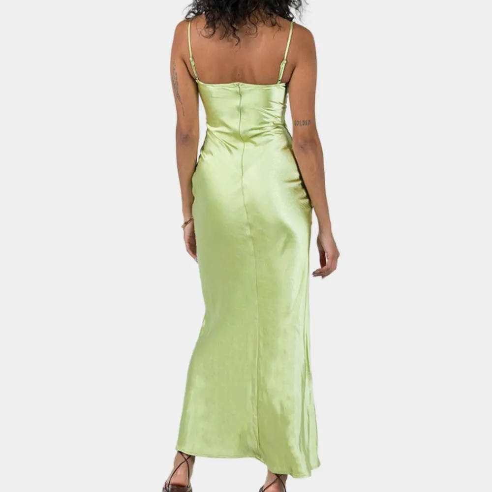 Betreed de wereld van luxe en elegantie met Elegante damesjurk. Deze jurk is niet zomaar een kledingstuk; het is een symbool van verfijning en vrouwelijkheid. Met zijn glanzende satijnen stof en tijdloos design biedt de Chantal-jurk niet alleen een sensuele look, maar ook een gevoel van zelfvertrouwen en moeiteloze klasse voor elke vrouw die hem draagt.