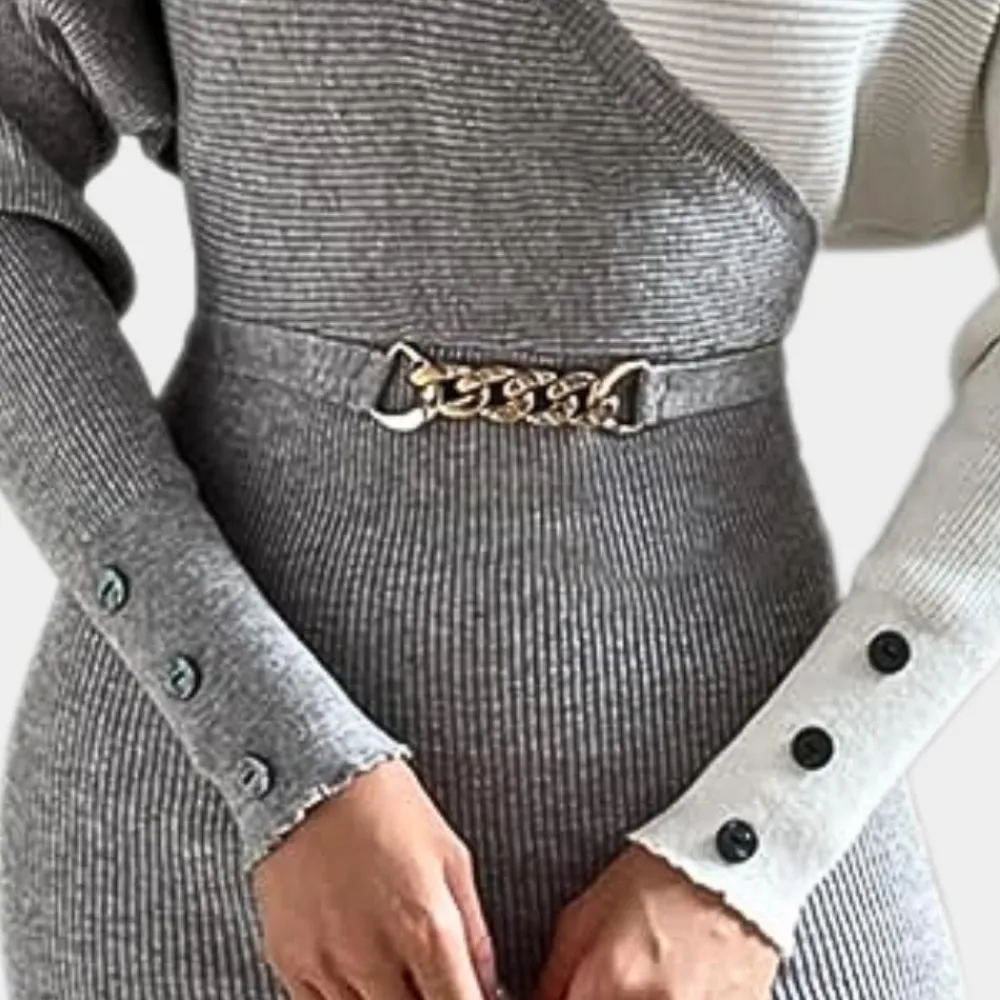 Trek de deur uit met zelfvertrouwen en stijl in de ELIANE – Casual Gebreide Jurk voor Dames, een echte basis voor de moderne garderobe.