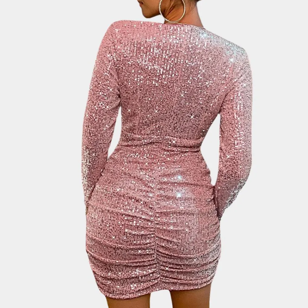 Investeren in een feestelijke damesjurk is een duurzame investering in de toekomst. Deze jurk is perfect voor de feestdagen. Verras iedereen op de dansvloer in deze glinsterende jurk die alle ogen naar je toe zal trekken. Maak een fashion statement met deze trendy feestjurk. Ga je hem dragen met kerst, oud en nieuw of een avondje uit?