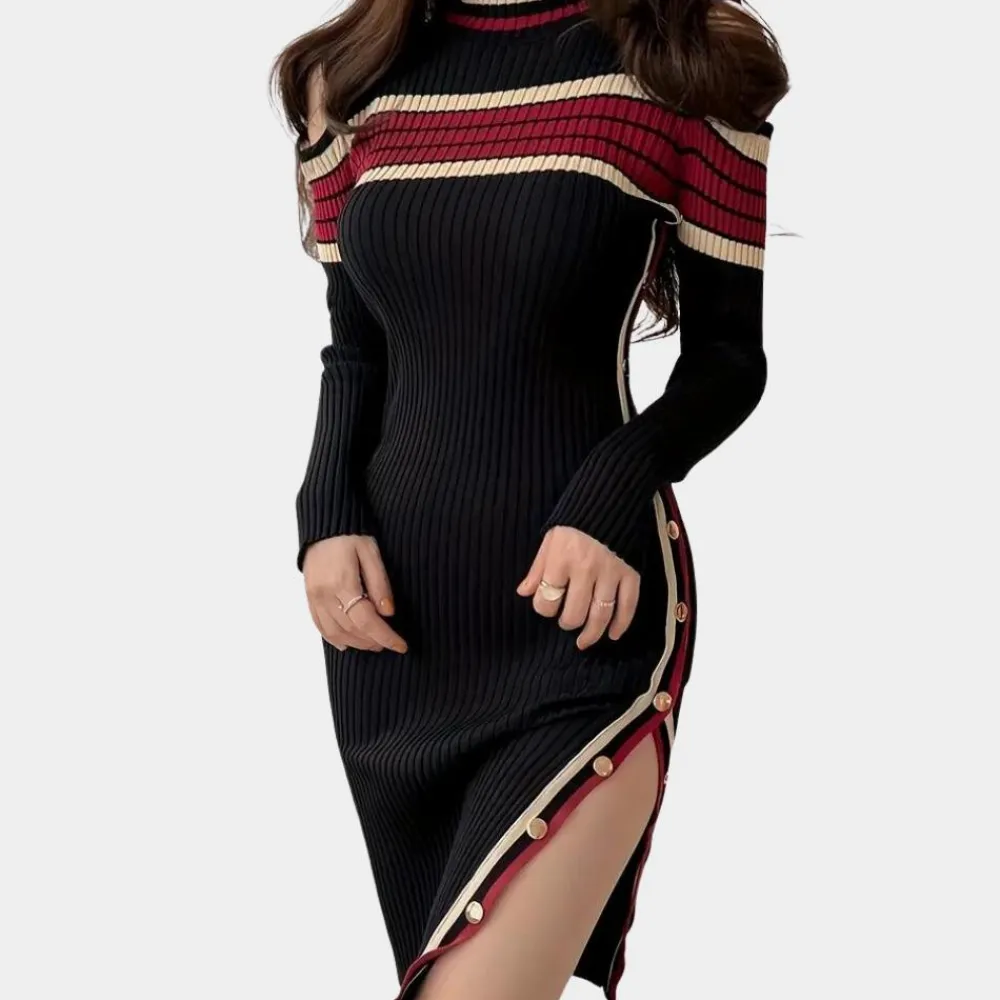 Trek Aandacht met de Eluned Gestreepte Gebreide Jurk voor Vrouwen – een ideale balans tussen comfort en stijl.