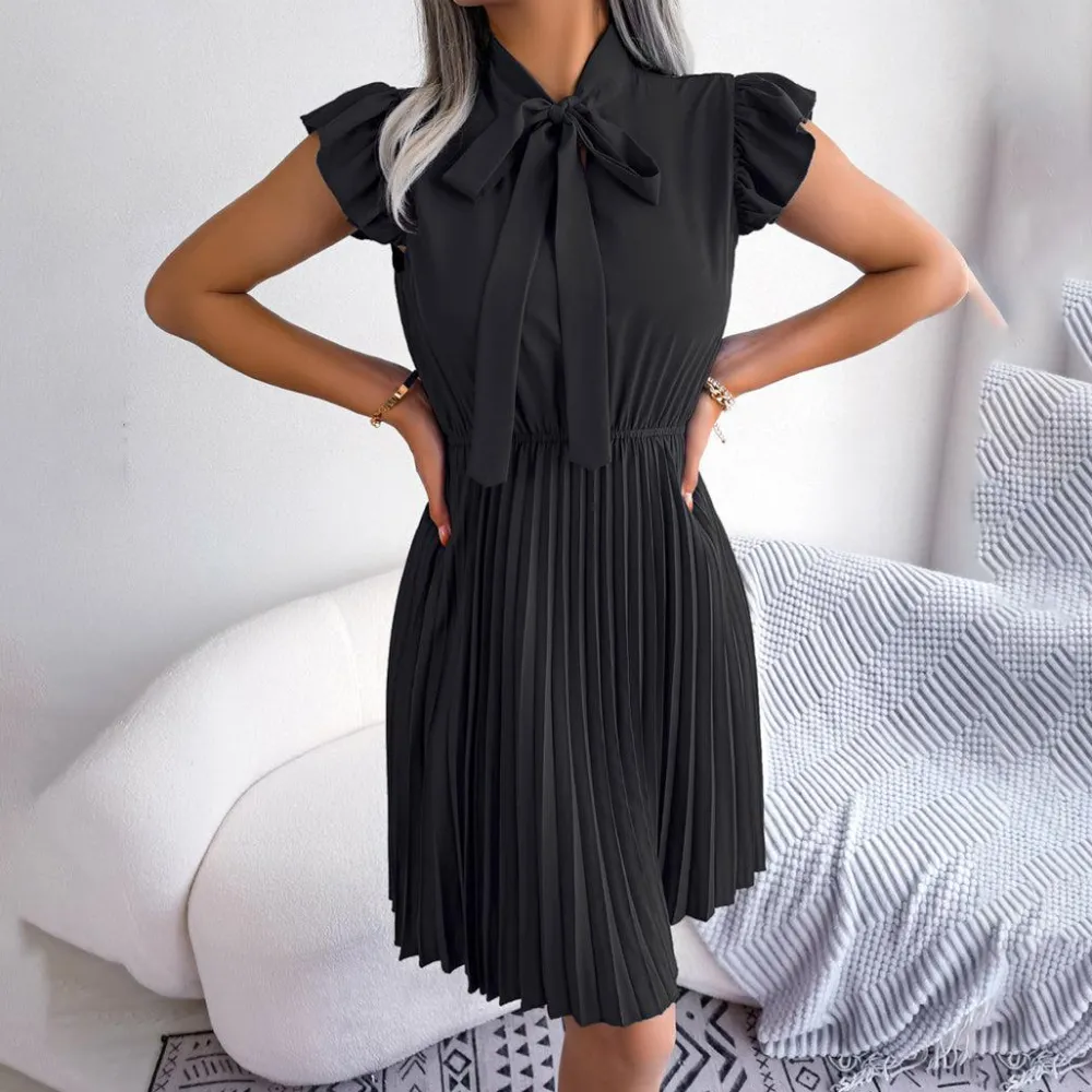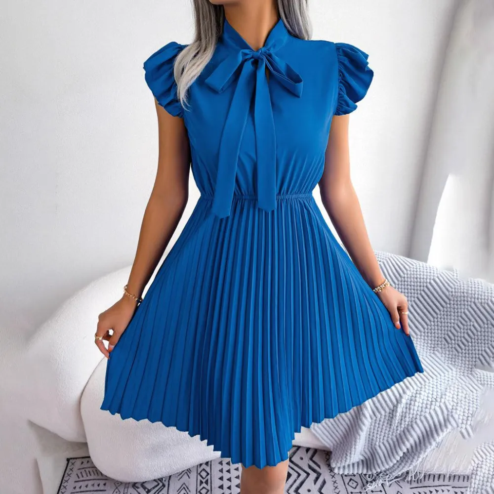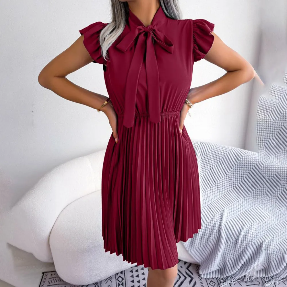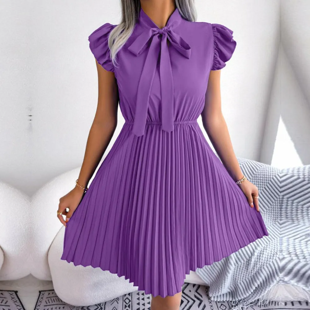 Deze jurk is gemaakt van een mengsel van 95% polyester en 5% spandex en voelt licht en ademend aan, perfect voor warme zomerdagen. Verkrijgbaar in vijf levendige kleuren – lavendel, zwart, groen, koningsblauw en bordeauxrood – je kunt de perfecte kleur vinden die bij je persoonlijke stijl past.