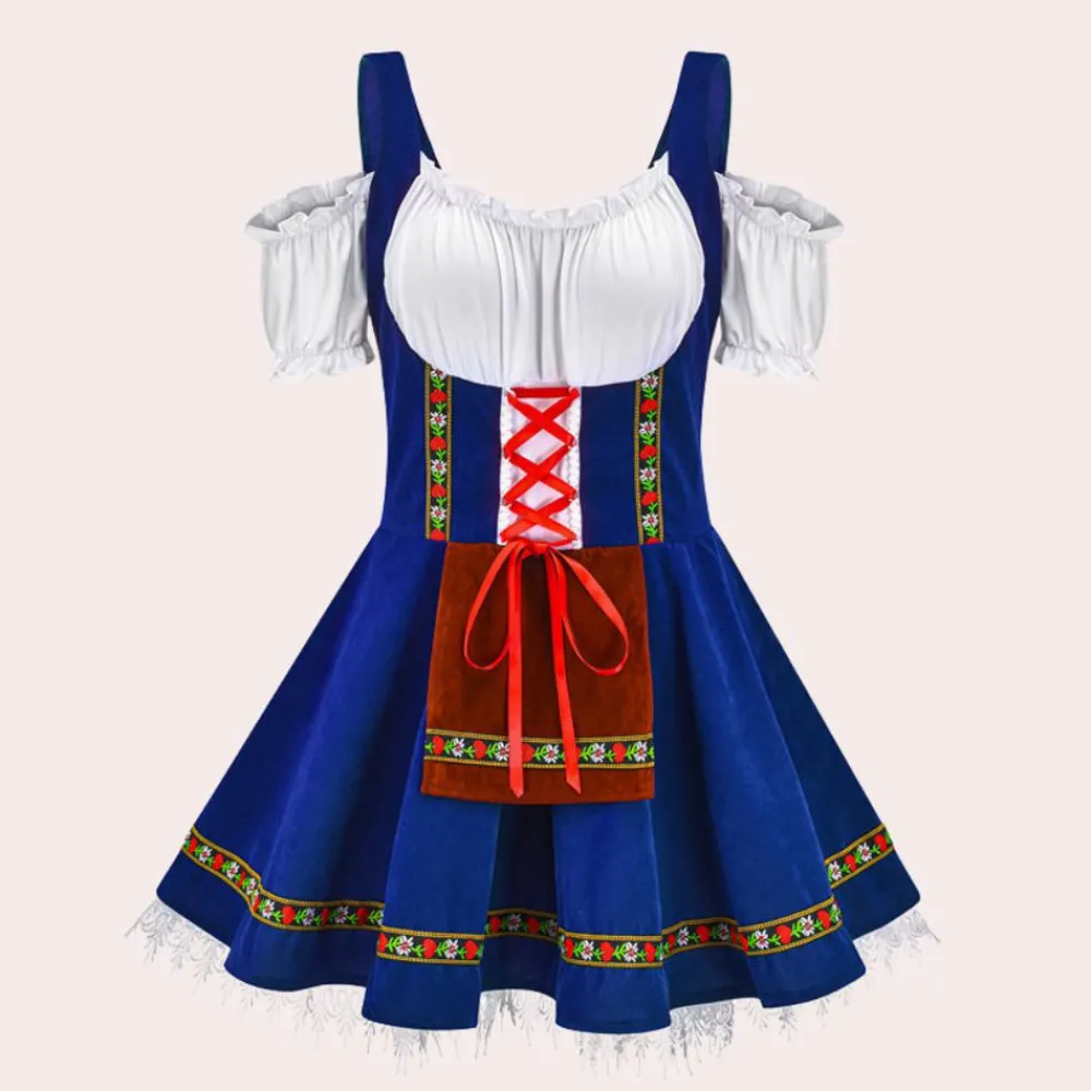 - Flatterende pasvorm: Het dirndl is ontworpen om je figuur mooi te accentueren, met een strakke taille en een vrolijke rok die zorgt voor een vrouwelijke uitstraling.