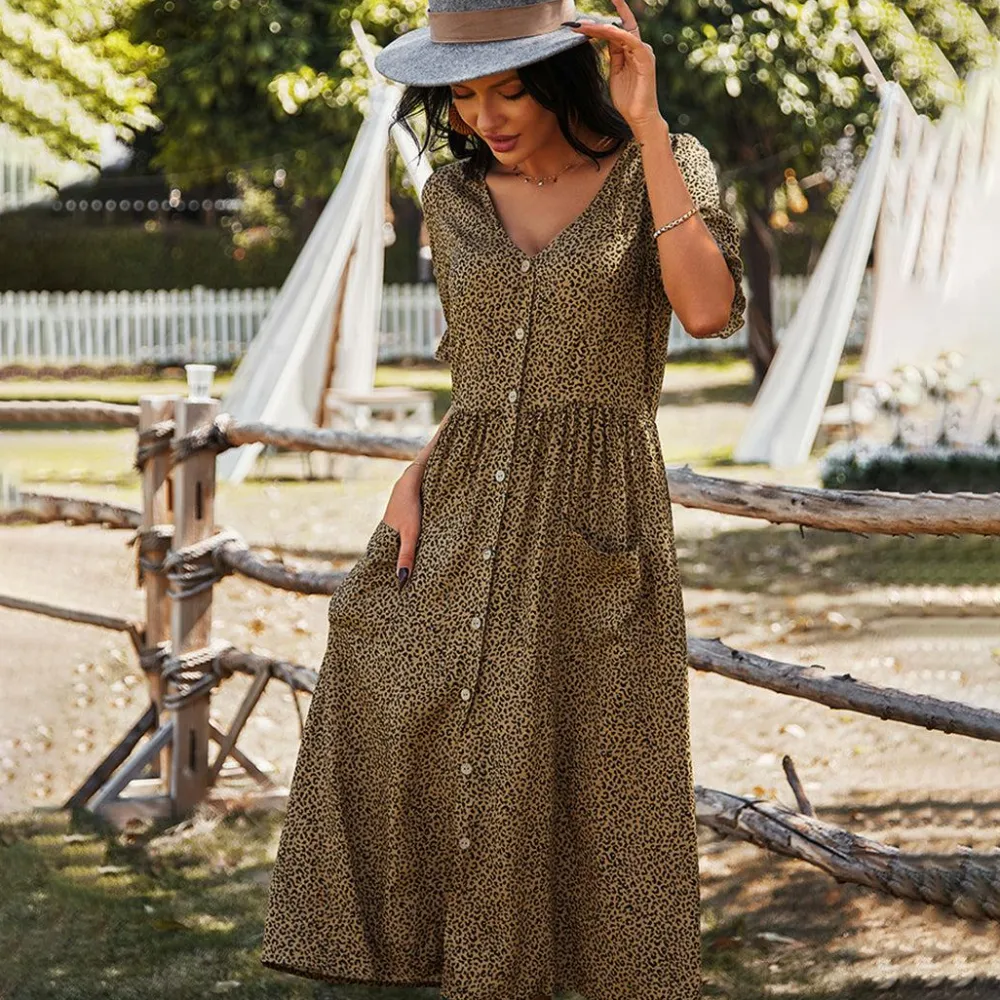 Zeg vaarwel tegen alle modedilemma’s deze zomer met onze EVERLEIGH Midi-jurk met knopen je favoriete outfit voor een onvergetelijke en stijlvolle vakantie!