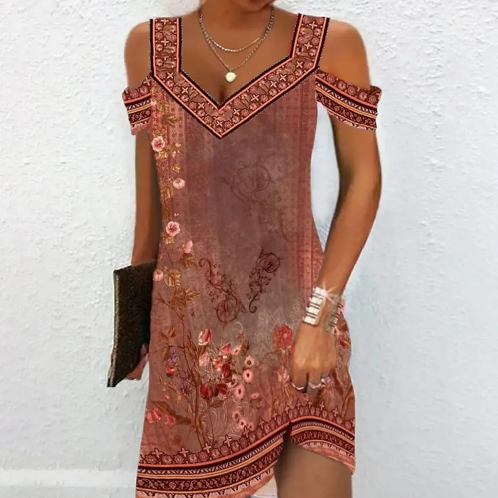 - Verleidelijke printpatronen: De jurk heeft fascinerende prints in zes verschillende kleuren- groen, blauw, lichtblauw, roze, bruin en groen – die een vleugje verfijning en elegantie toevoegen aan je zomerse stijl.