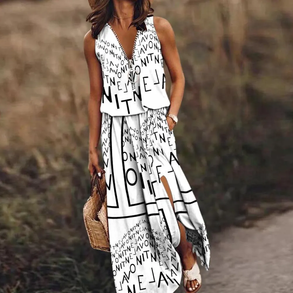 De Iva Elegante damesjurk met print is de perfecte mix van stijl en comfort. Deze maxi-jurk met lange mouwen en trendy print is een echte blikvanger. Gemaakt van ademend en comfortabel polyester, met een stijlvolle rits bij de halslijn die een extra vleugje elegantie toevoegt.