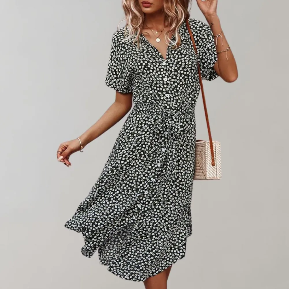 - Gemakkelijk te dragen: De korte mouw en midi-lengte maken het een praktische en modieuze keuze.