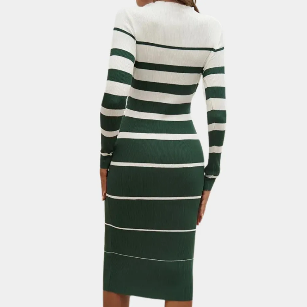 Tijdloos ontwerp: Deze jurk heeft een klassieke snit die elke lichaamsvorm complimenteert, ideaal voor zowel casual als formele gelegenheden.