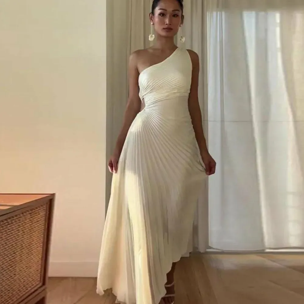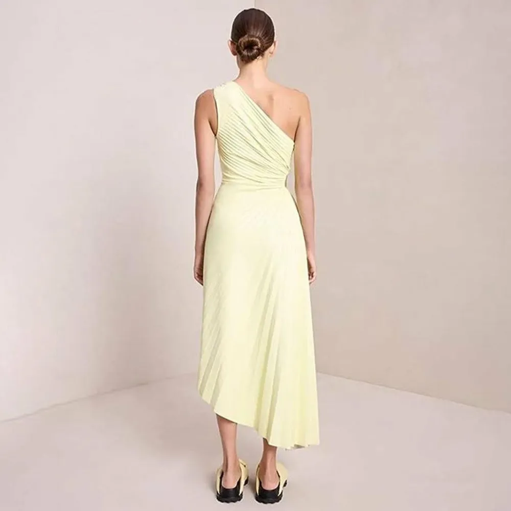 Ontdek de ultieme mix van stijl en verfijning met onze KARSYN Elegante geplooide jurk met een schuine halslijn en plooien. Deze jurk is bedoeld om je sexy en zelfverzekerd te laten voelen en heeft een prachtig ontwerp zonder mouwen en één schouder. De geplooide en onregelmatige zoom voegt een vleugje uniciteit toe, waardoor het perfect is voor feestjes of elke speciale gelegenheid. Het is gemaakt van polyester van topkwaliteit en zorgt voor comfort en ademend vermogen tijdens het zomerseizoen. De effen kleur en holle details zorgen voor een chique en verfijnde look. Til je mode naar een hoger niveau met deze veelzijdige jurk en laat een blijvende indruk achter waar je ook gaat. Shop nu en ontketen je innerlijke fashionista!