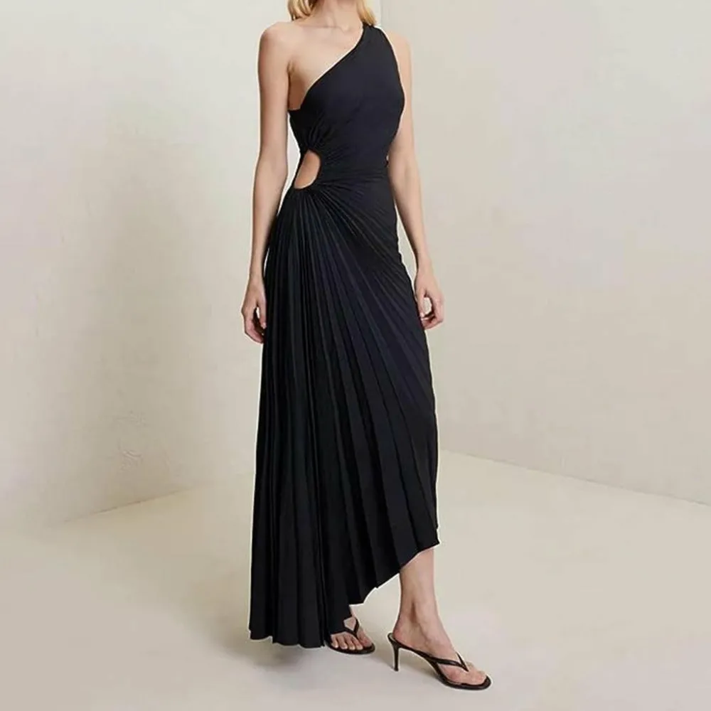 - Verleidelijk Stijlvol Ontwerp: Maak je klaar om een blijvende indruk te maken met onze sexy mouwloze feestjurk met één schouder. Het verleidelijke ontwerp en de aandacht voor detail maken van jou het middelpunt van elk evenement.
