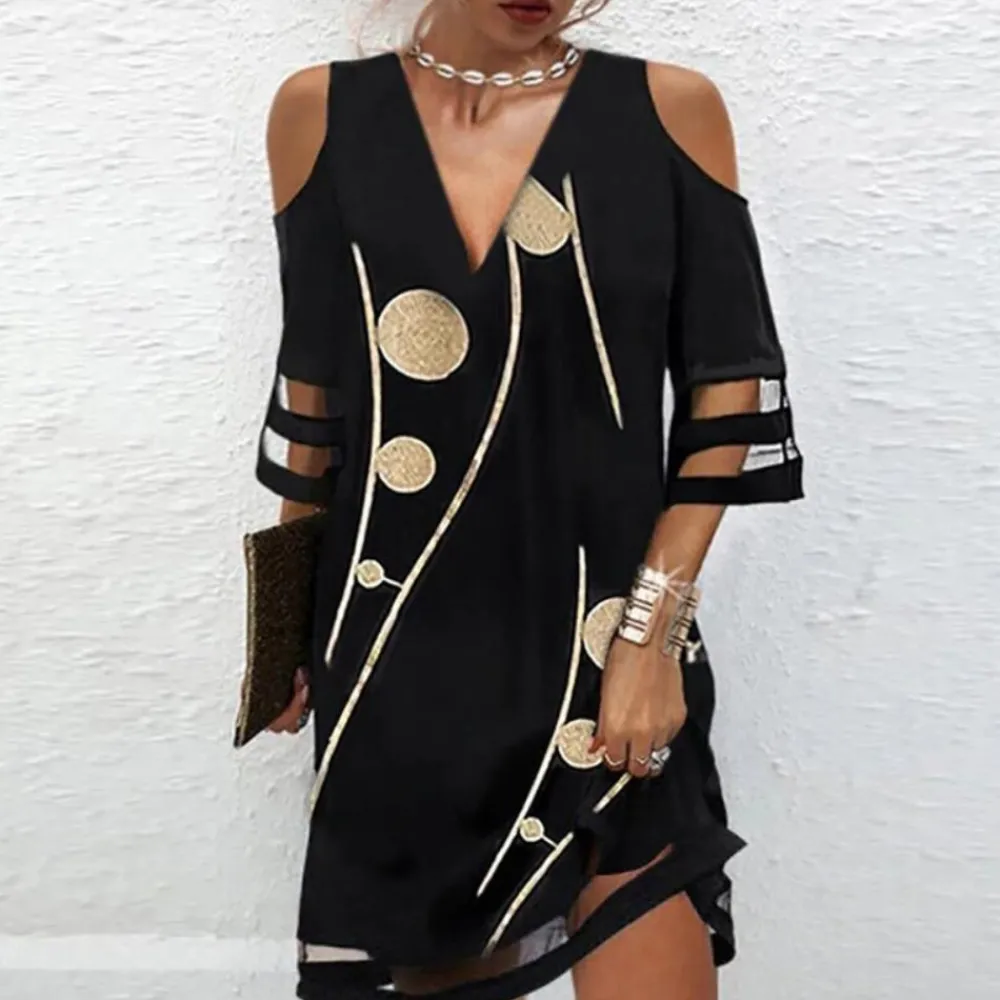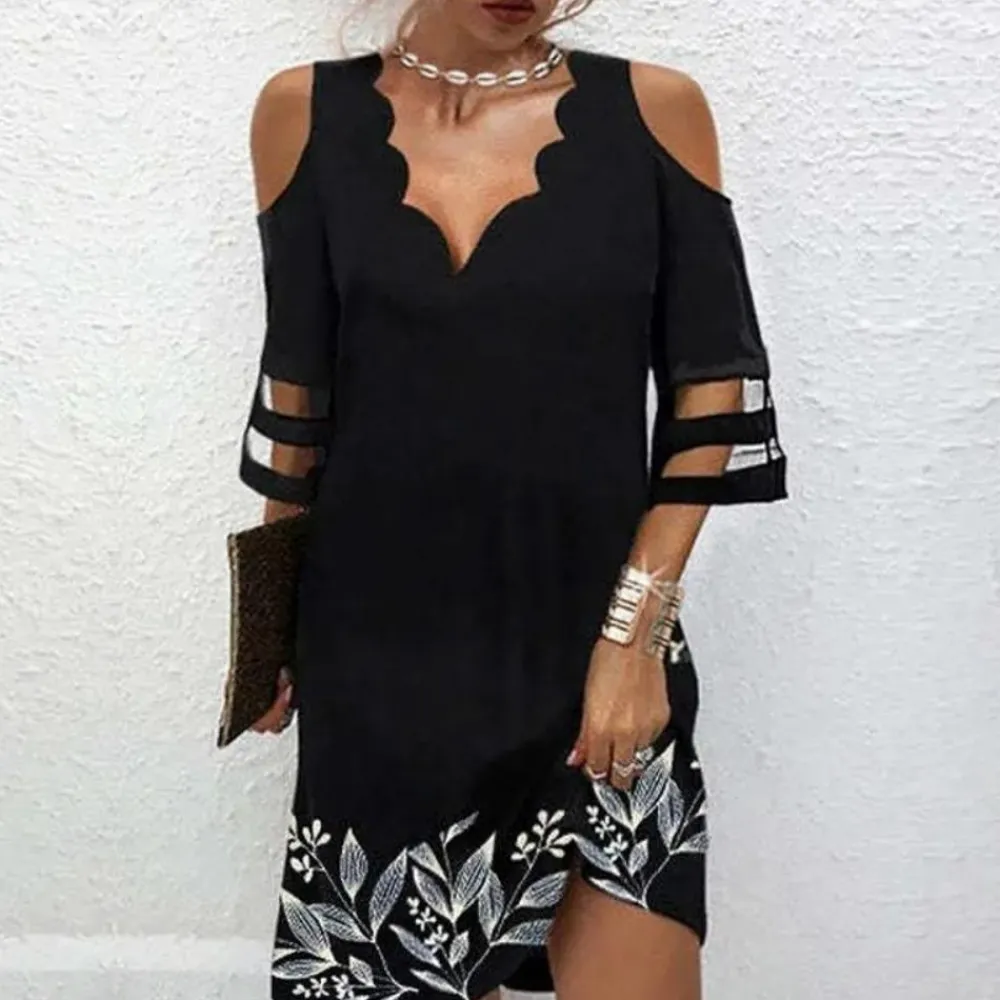 Met een flatterend silhouet is deze jurk ideaal voor wie houdt van een mix van klassieke en trendy elementen. Perfect voor speciale gelegenheden of een stijlvolle avond uit, benadrukt deze jurk vrouwelijke gratie en modebewustzijn met romantische kanten details en een trendy halslijn met koude schouders.