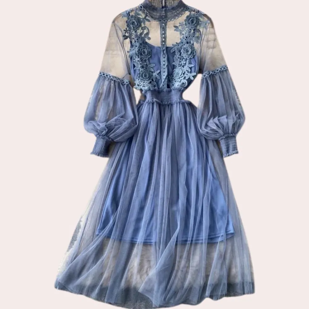 Beleef de verfijnde aantrekkingskracht van onze Leticia Stijlvolle Bloemenjurk met Opstaande Kraag en Lantaarnmouwen, waar delicate bloemenaccenten samenkomen met een doordacht ontwerp. De opstaande kraag voegt een vleugje verfijning toe, terwijl de lantaarnmouwen een moderne, eigentijdse uitstraling geven.