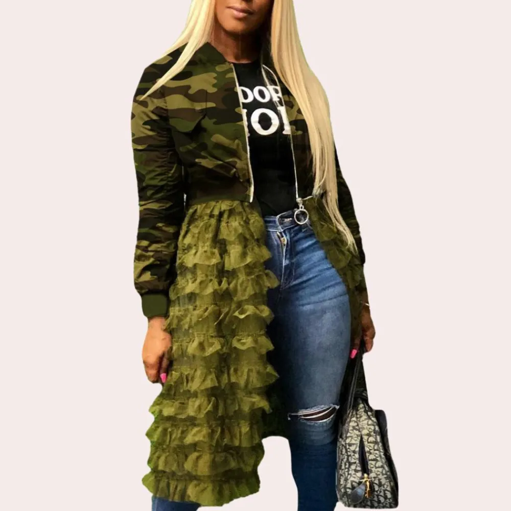 Uniek ontwerp dat moeiteloos van buitenkleding naar een zelfstandige outfit overgaat.