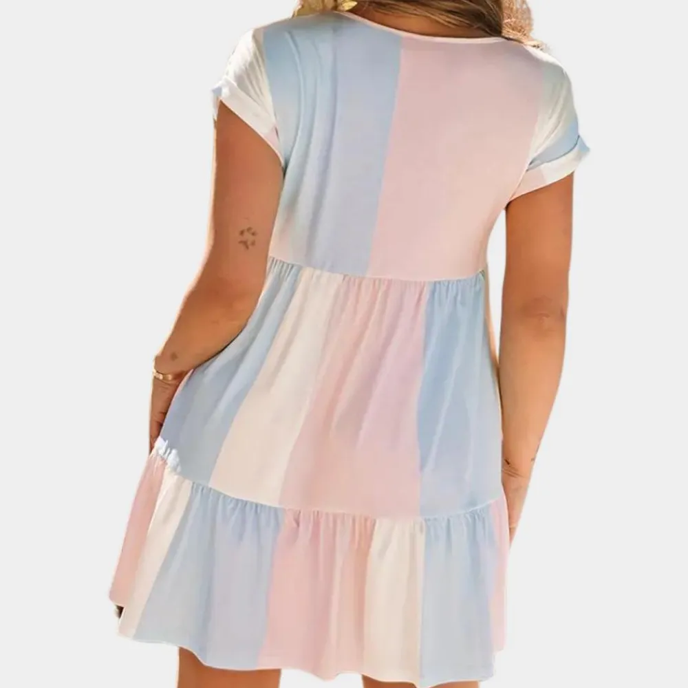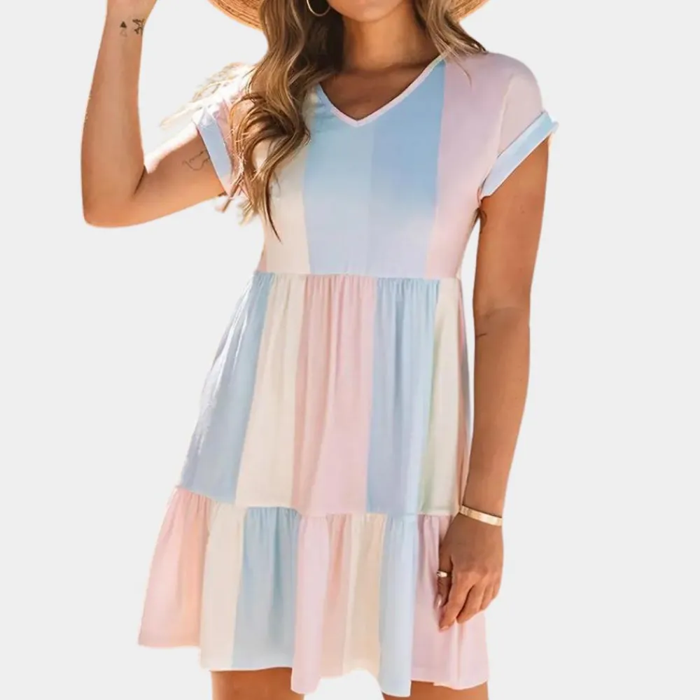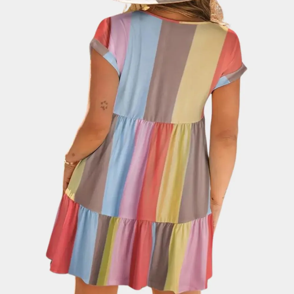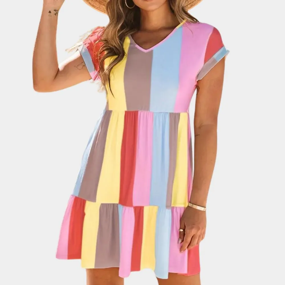 Onze Līna Lichtgewicht en kleurrijke damesjurk heeft een prachtige vorm die je rondingen zal flatteren en je een vrouwelijke uitstraling zal geven.