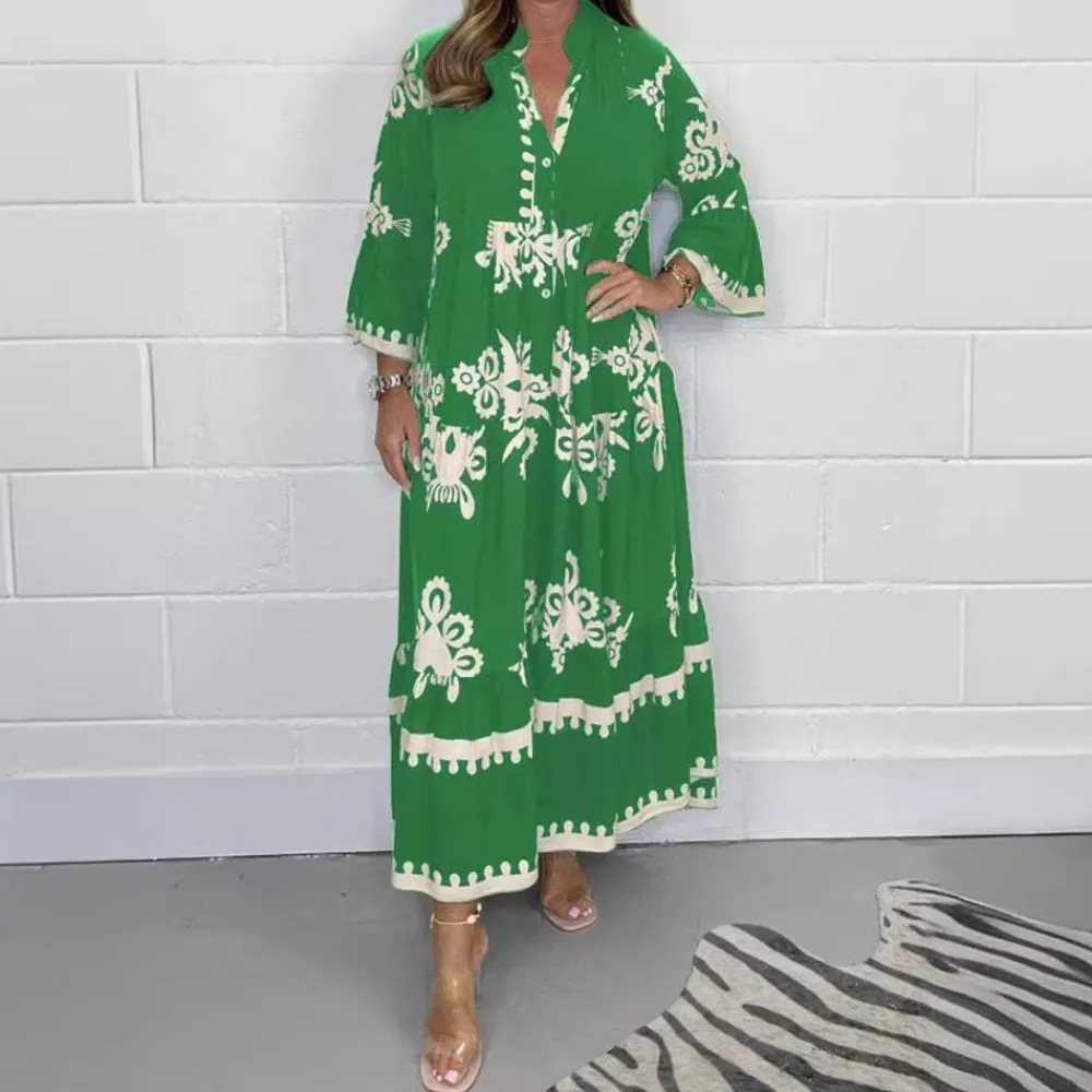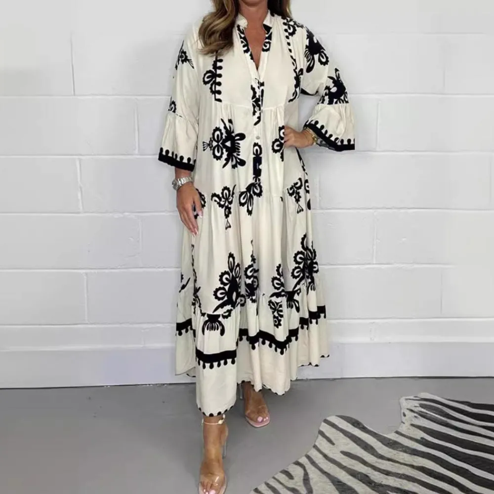 De vloeiende maxilengte omhult zachtjes je silhouet en biedt optimaal comfort en stijl voor elke lichaamsvorm. Perfect voor feestelijke gelegenheden of ontspannen zomerdagen.