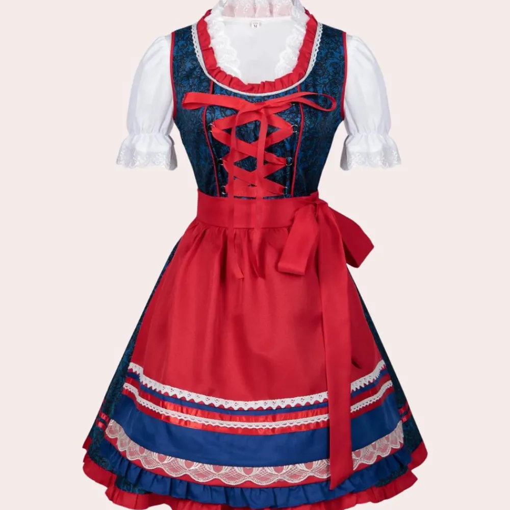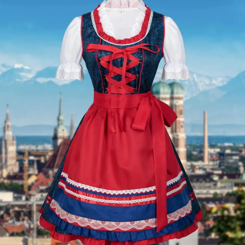 De Maritza Klassieke Oktoberfest Jurk is een prachtig ensemble dat traditionele klederdracht moeiteloos samenbrengt met een moderne uitstraling. Het verfijnde schort en de elegant ontworpen blouse geven de outfit een tijdloze charme. Voor zowel feestelijke momenten als alledaagse outfits zal deze klederdracht zeker de aandacht trekken.