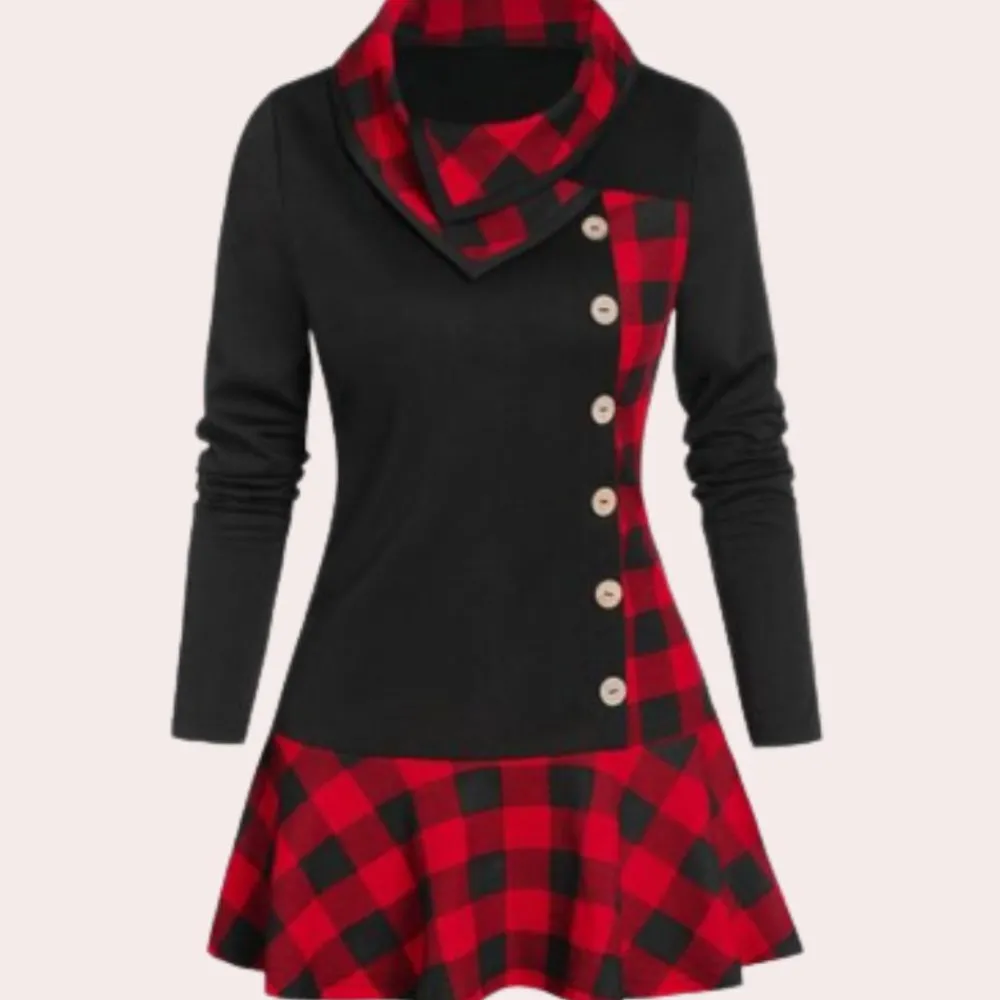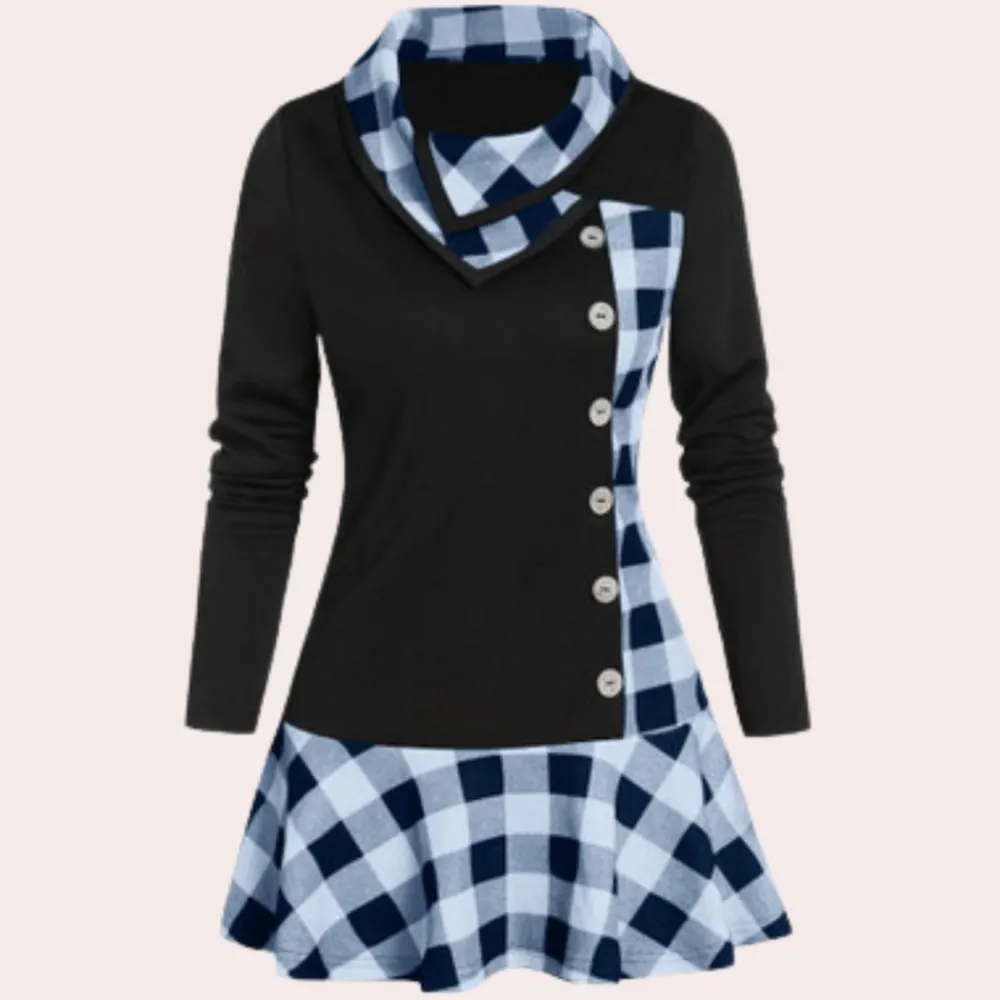 De Niki Tijdloze Midi-jurk met ruitmotief voor dames jurk heeft een moderne ruitprint en een unieke asymmetrische zoom, wat een trendy draai aan een klassiek patroon geeft. Perfect voor zowel casual uitjes als speciale evenementen, garandeert hij moeiteloze elegantie en helpt hij je opvallen.