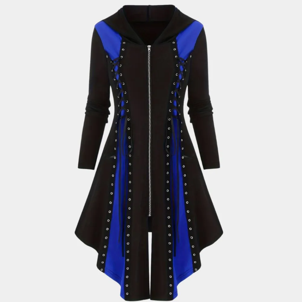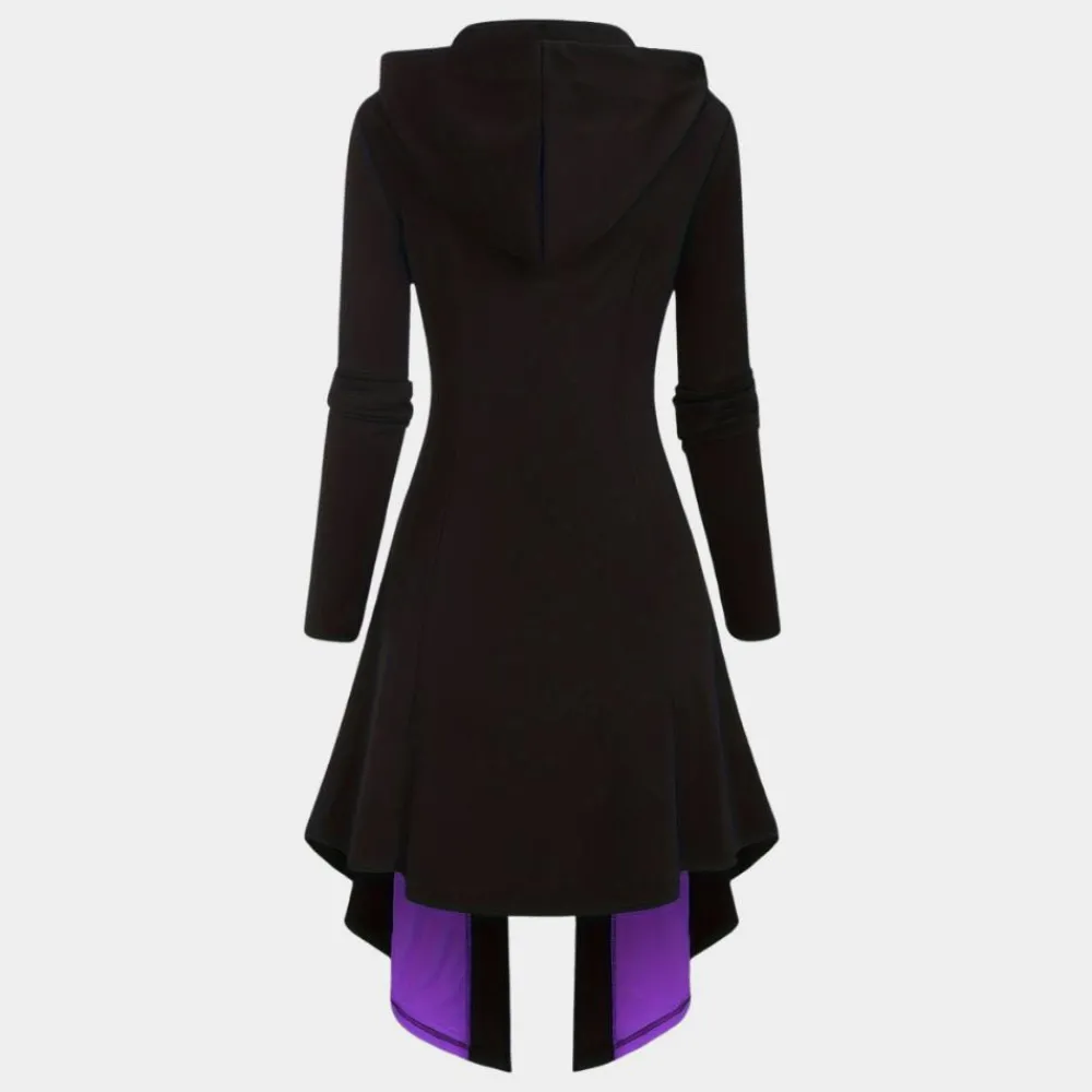 Presenteren we de Nyssa Casual Hoodie Jurk met Stijlvolle Rits. een schitterende samensmelting van modern design en comfort. Deze jurk heeft een flatterende A-lijn snit met een asymmetrische zoom die beweging en flair toevoegt, ideaal voor een opvallende look. De ritssluiting aan de voorkant, die over de volledige lengte van de jurk loopt, wordt benadrukt door opvallende oogjes, wat zorgt voor een gestructureerd maar vloeiend silhouet dat zowel veelzijdig als stijlvol is.