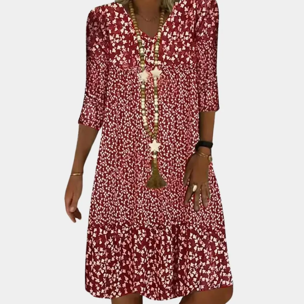 - Verfijnd en flatterend ontwerp: De Ottilie jurk is ontworpen om je natuurlijke schoonheid te accentueren met een V-hals en een halflange snit die perfect is voor zowel dagelijkse bezigheden als speciale gelegenheden.