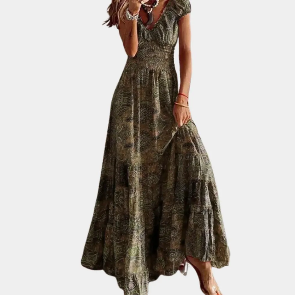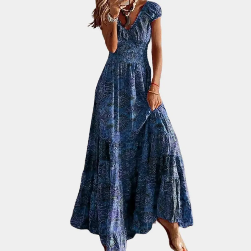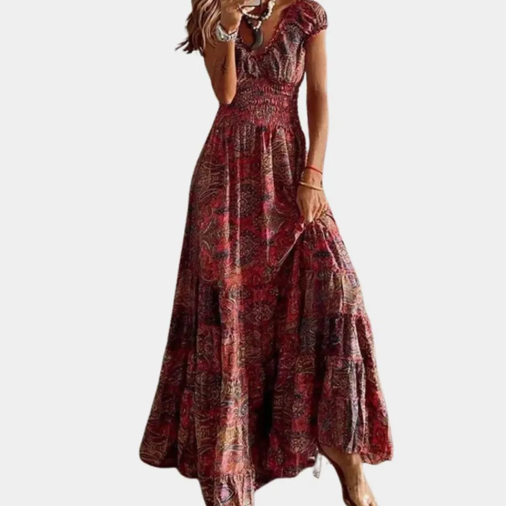 BETOVER MET DE RENEE COMFORTABELE MAXI-JURK VOOR DAMES MET BLOEMENPRINT EN RUCHESKRAAG