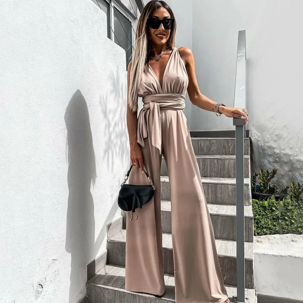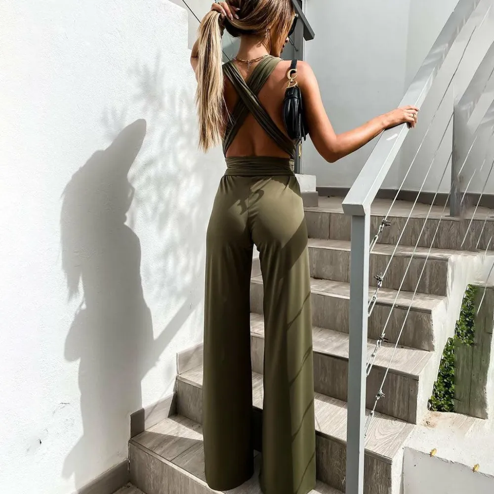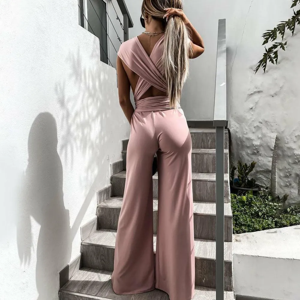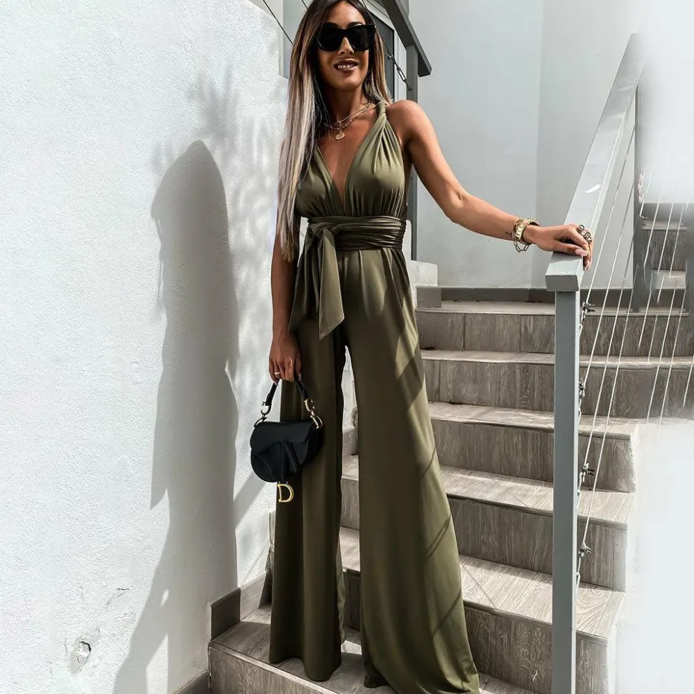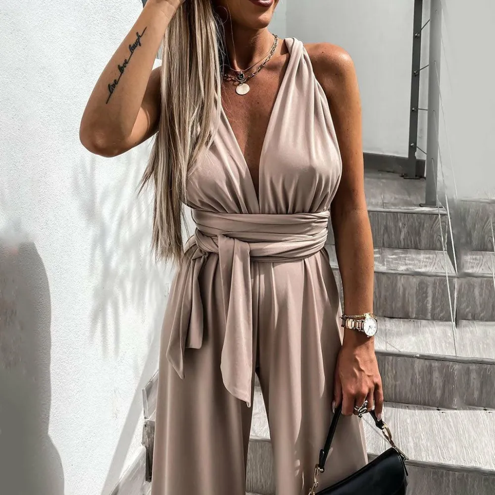 Een vloeiende, losse snit met verschillende contouren die je figuur accentueren zonder aan comfort in te boeten. Dit elegante kledingstuk is niet alleen een zomerse jumpsuit, maar biedt je ook de mogelijkheid om het op verschillende manieren te dragen, te beginnen met de veelzijdige top.
