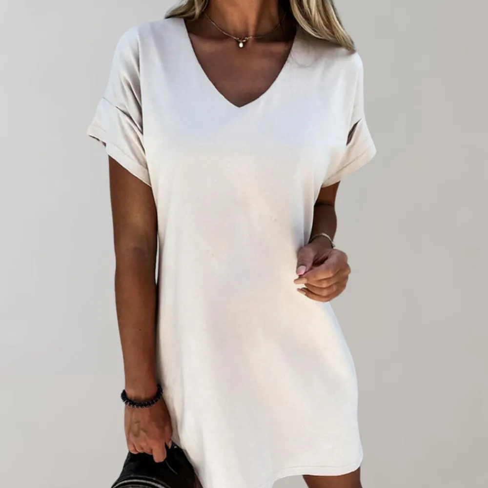 Ontdek casual elegantie – met de Solveig Casual damesjurk en zijn wijde korte mouwen!