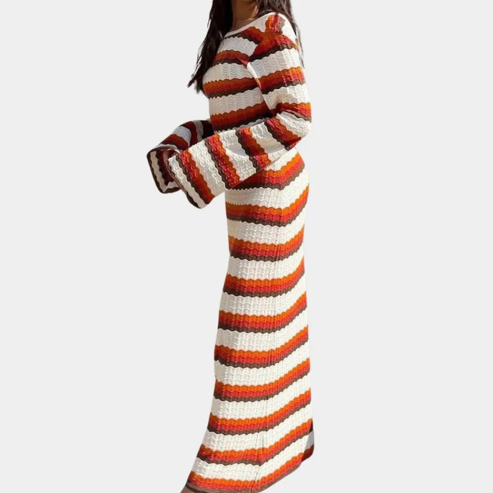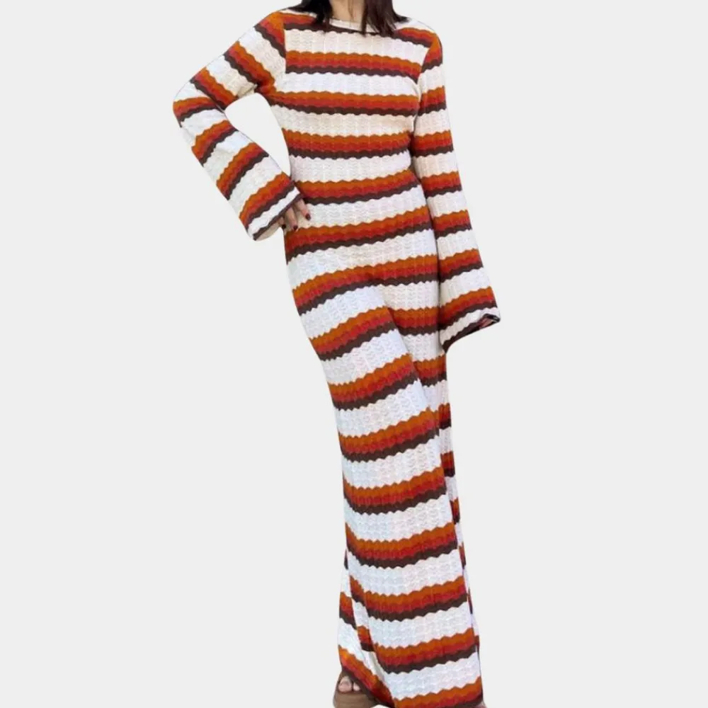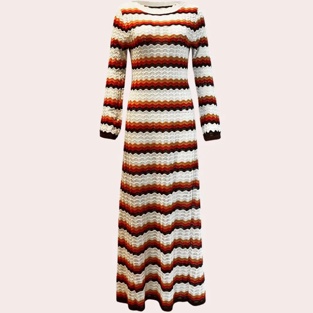 Madzia Stijlvolle gebreide jurk met strepen voor dames: Een stijlvolle en comfortabele jurk voor elke gelegenheid