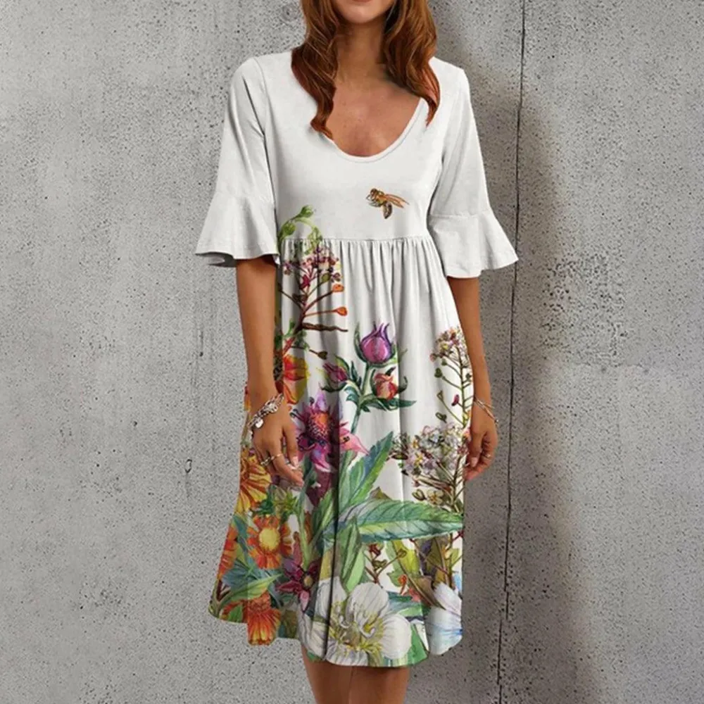Voeg een vleugje bloemenpracht toe aan je zomercollectie met onze ULLA Stijlvolle casual jurk. Kies uit een verscheidenheid aan betoverende kleuren, omarm de bloeiende trend en straal moeiteloze elegantie uit waar je ook gaat. Blijf comfortabel, chic en in contact met de natuur dit seizoen.