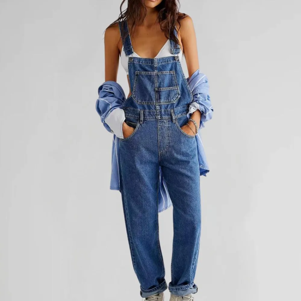 Met zijn comfortabele, casual stijl is de Valeria Trendy denim jumpsuit voor dames ideaal voor buitenactiviteiten en geeft je tegelijkertijd een stijlvolle uitstraling. Gemaakt van een stevige en comfortabele stof die je bewegingsvrijheid biedt.