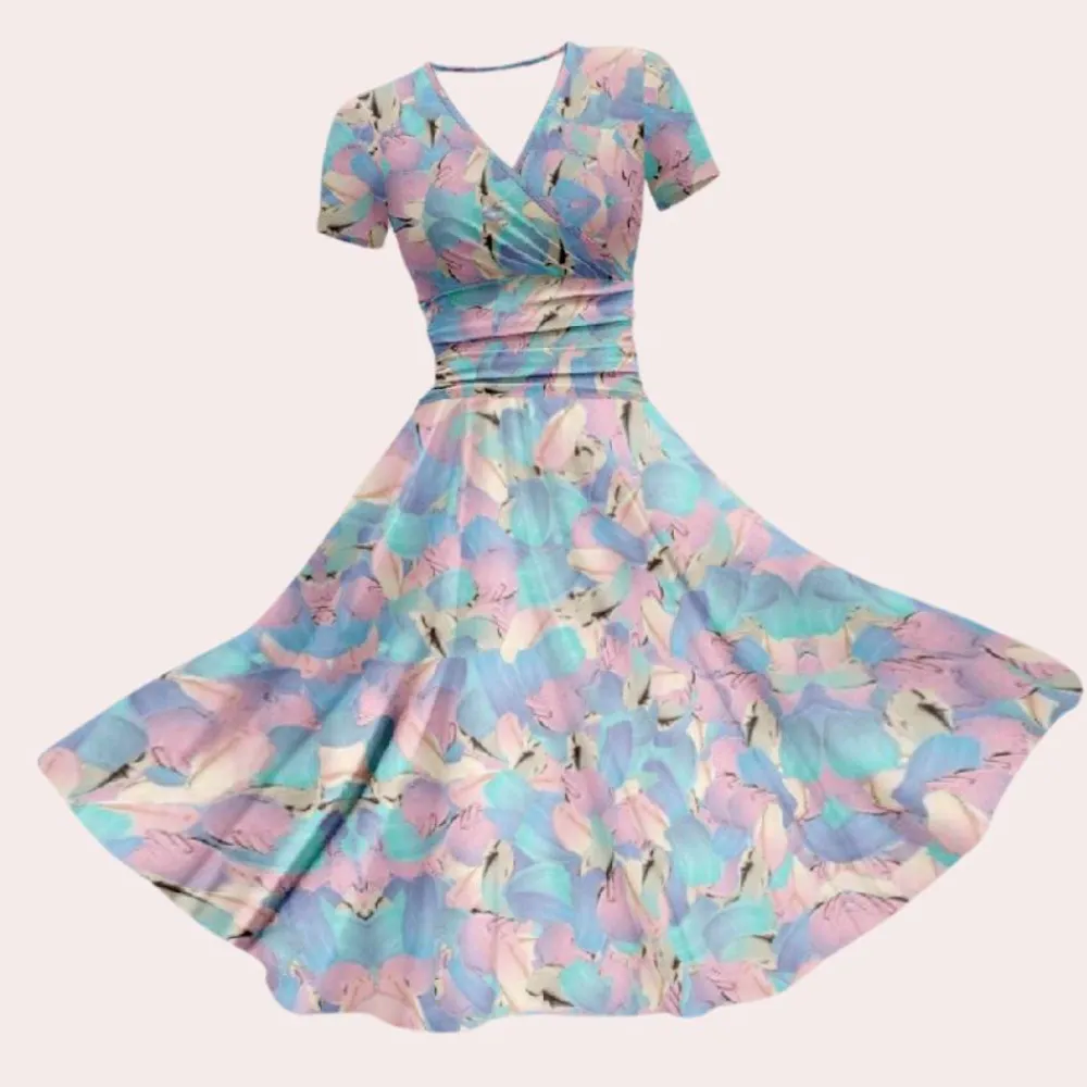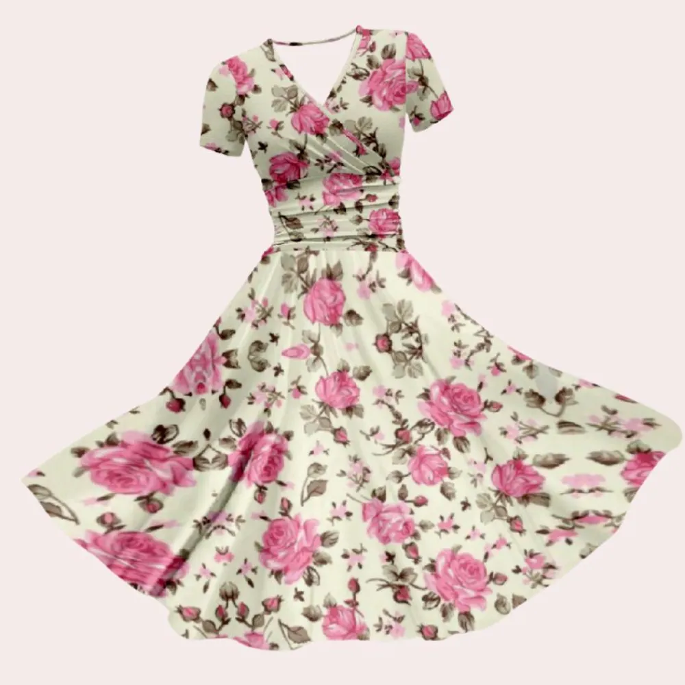 Deze jurk is ideaal voor lente- en zomerdagen en straalt veelzijdigheid uit, waardoor hij perfect is om elke dag te dragen of op vakantie. Het bloemenpatroon voegt een levendige touch toe aan je outfit en zorgt ervoor dat je opvalt met moeiteloze charme.