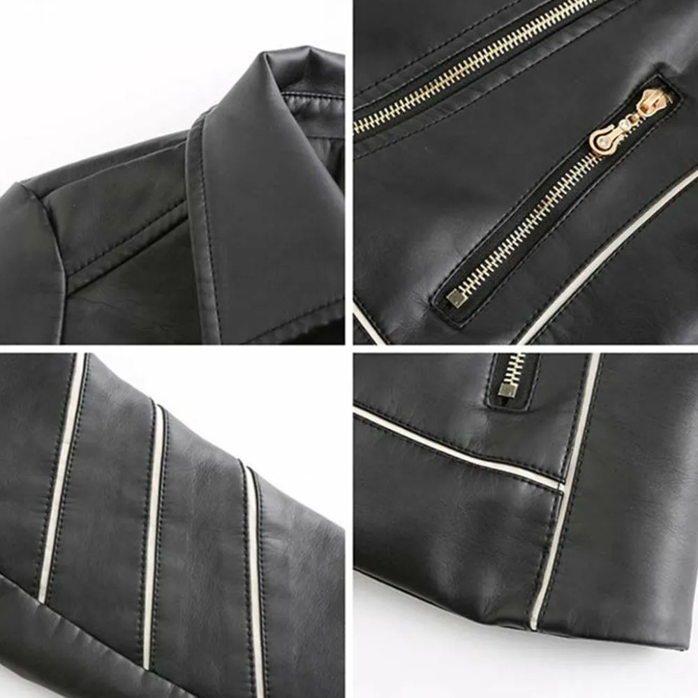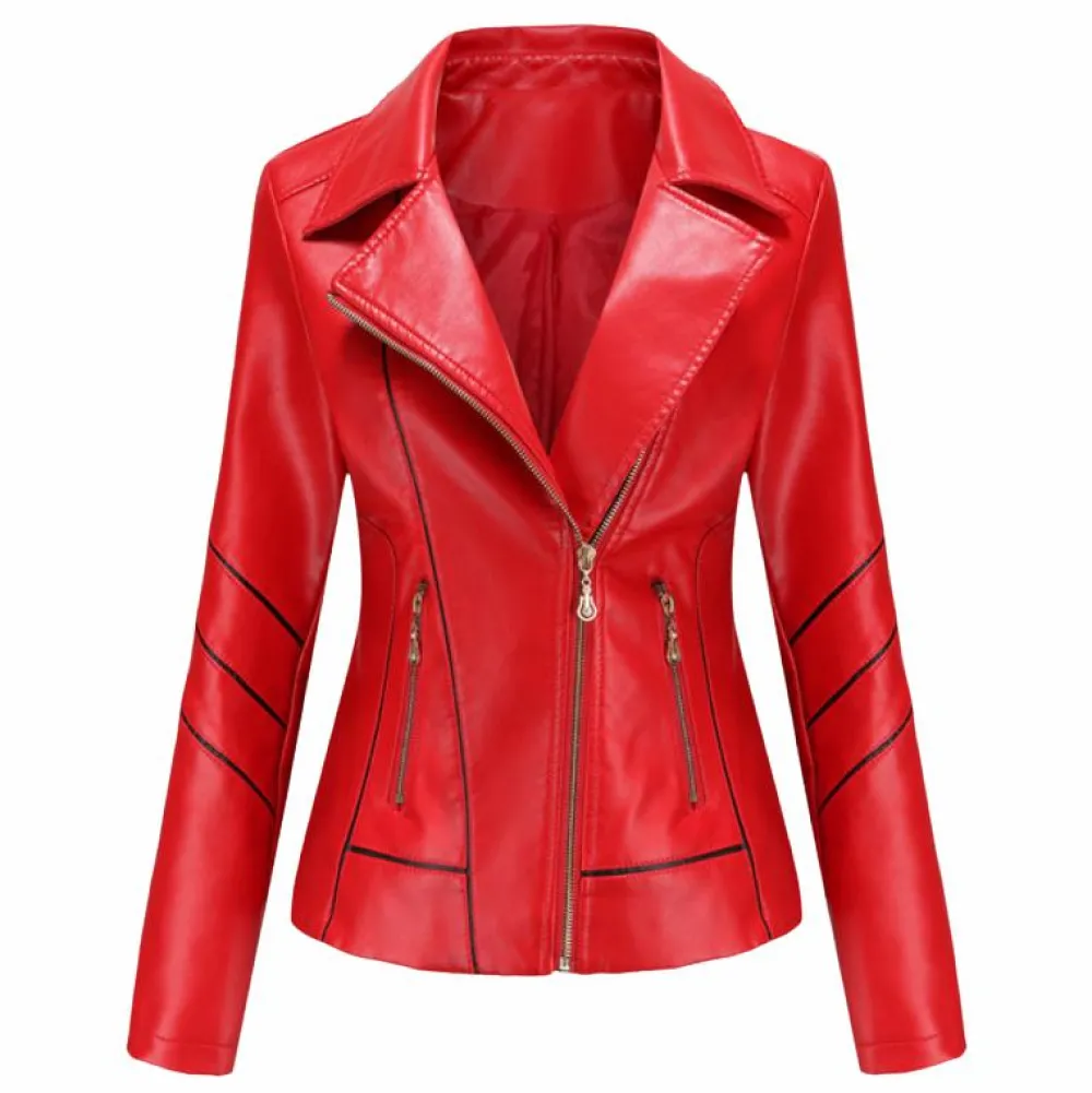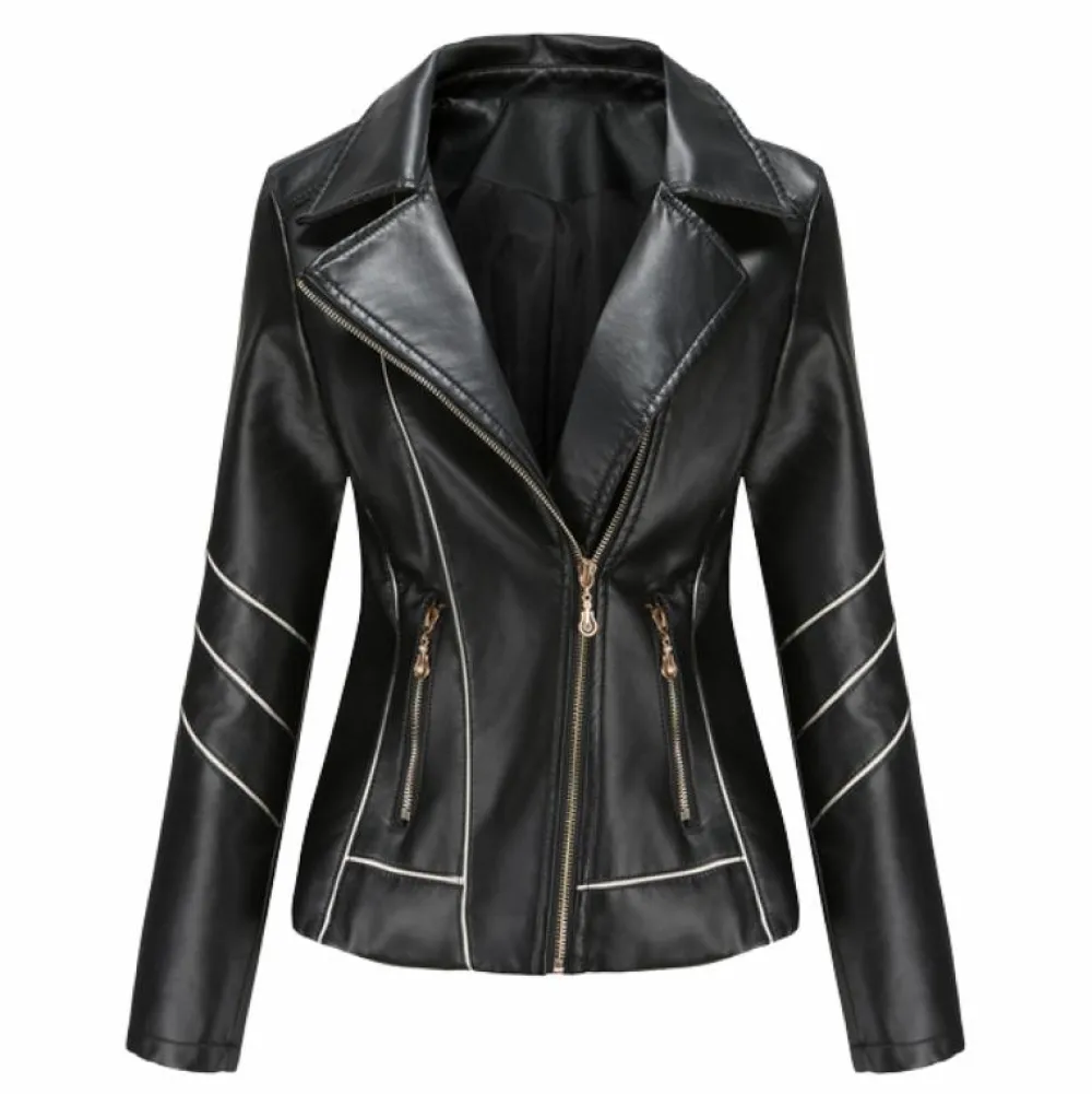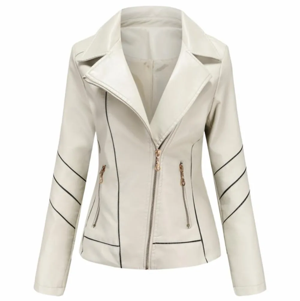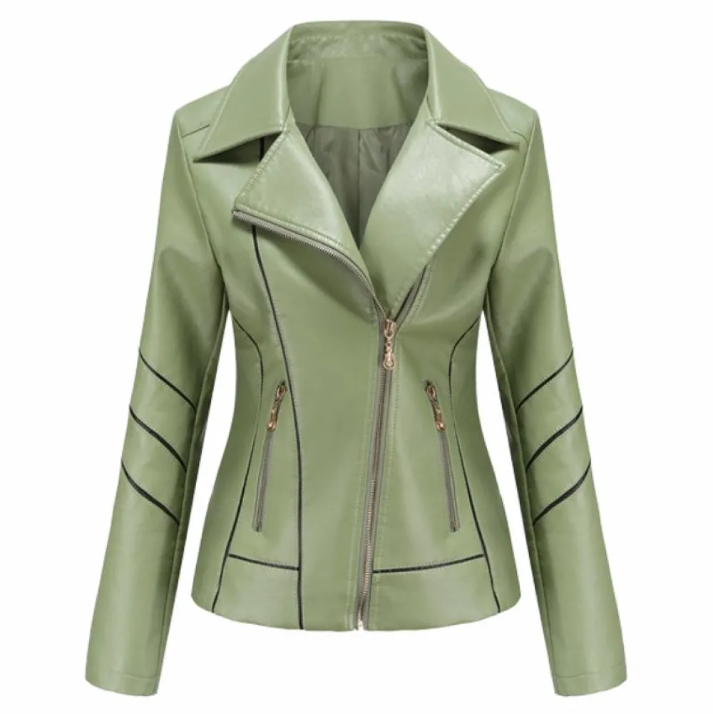De jas heeft een asymmetrische rits en een klassieke reverskraag die er vooral stijlvol uitziet als hij open wordt gedragen. Het heeft twee zakken die voldoende ruimte bieden voor uw handen, sleutels en andere kleine voorwerpen.