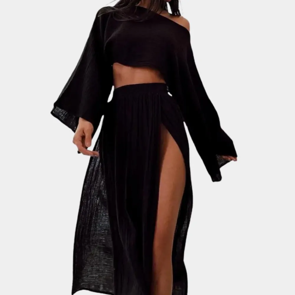 - De Alodia Tweedelige casual damesset met hoge split heeft een hoge split voor een vleugje allure en verfijning.
