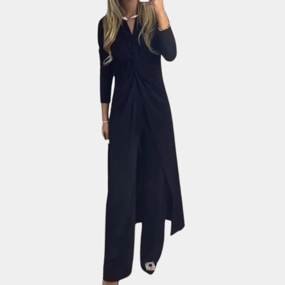 Ontdek de Azura tweedelige set voor dames, beschikbaar in elegante kleuren zoals zwart, blauw, groen en rood. Deze veelzijdige set dames is ideaal voor zowel relaxte dagen thuis als voor een trendy uitje.