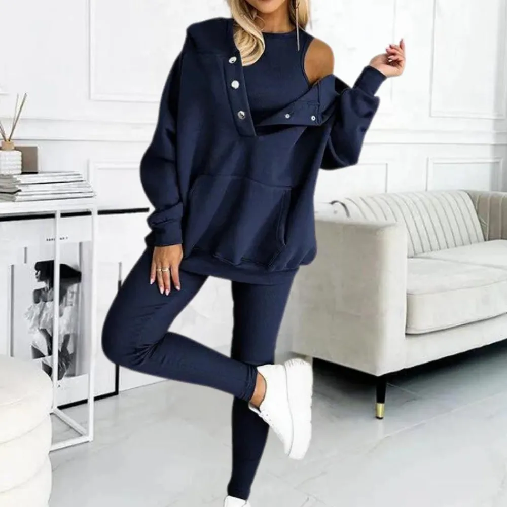 Deze 3-delige set is de perfecte keuze om elke dag te dragen en biedt een uitstekende optie voor een comfortabele maar stijlvolle look.