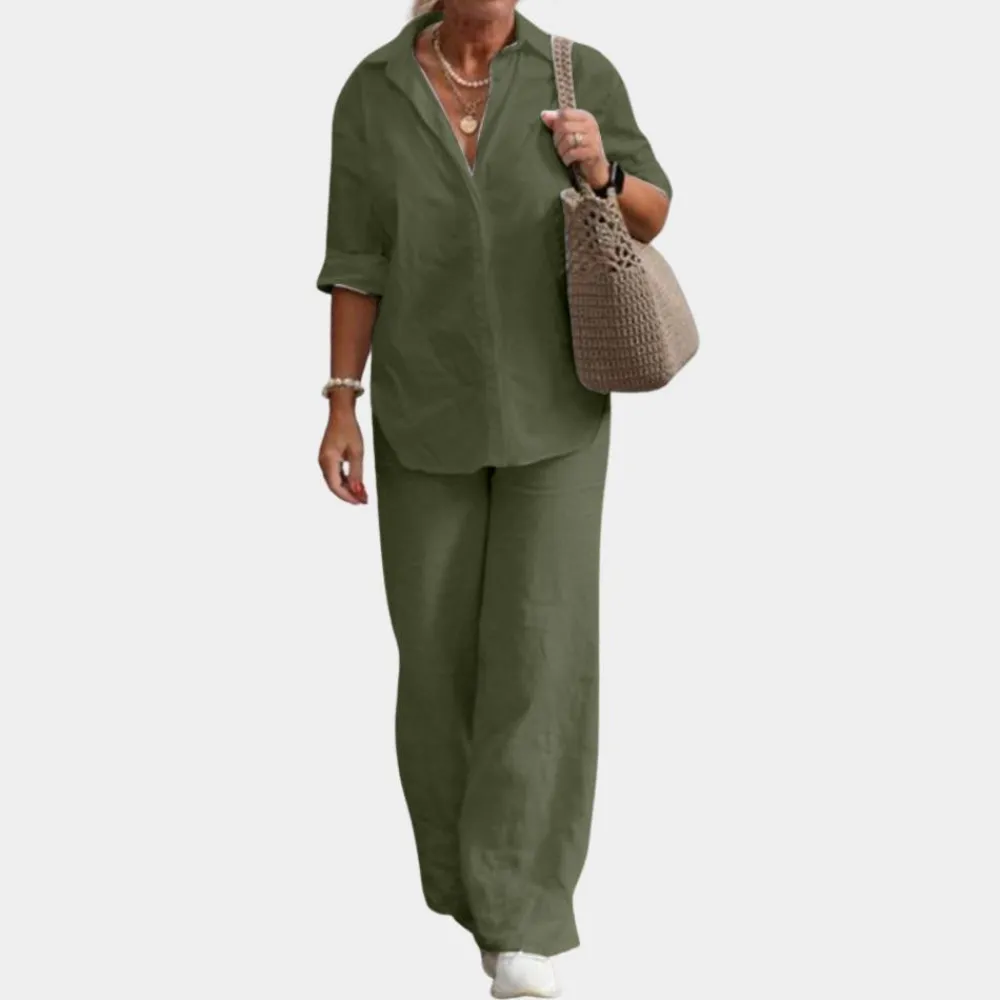 Ondanks de ruime vorm benadrukt onze Connie Comfortabele tweedelige damesset je rondingen en creëer je een vrouwelijke en verfijnde look.