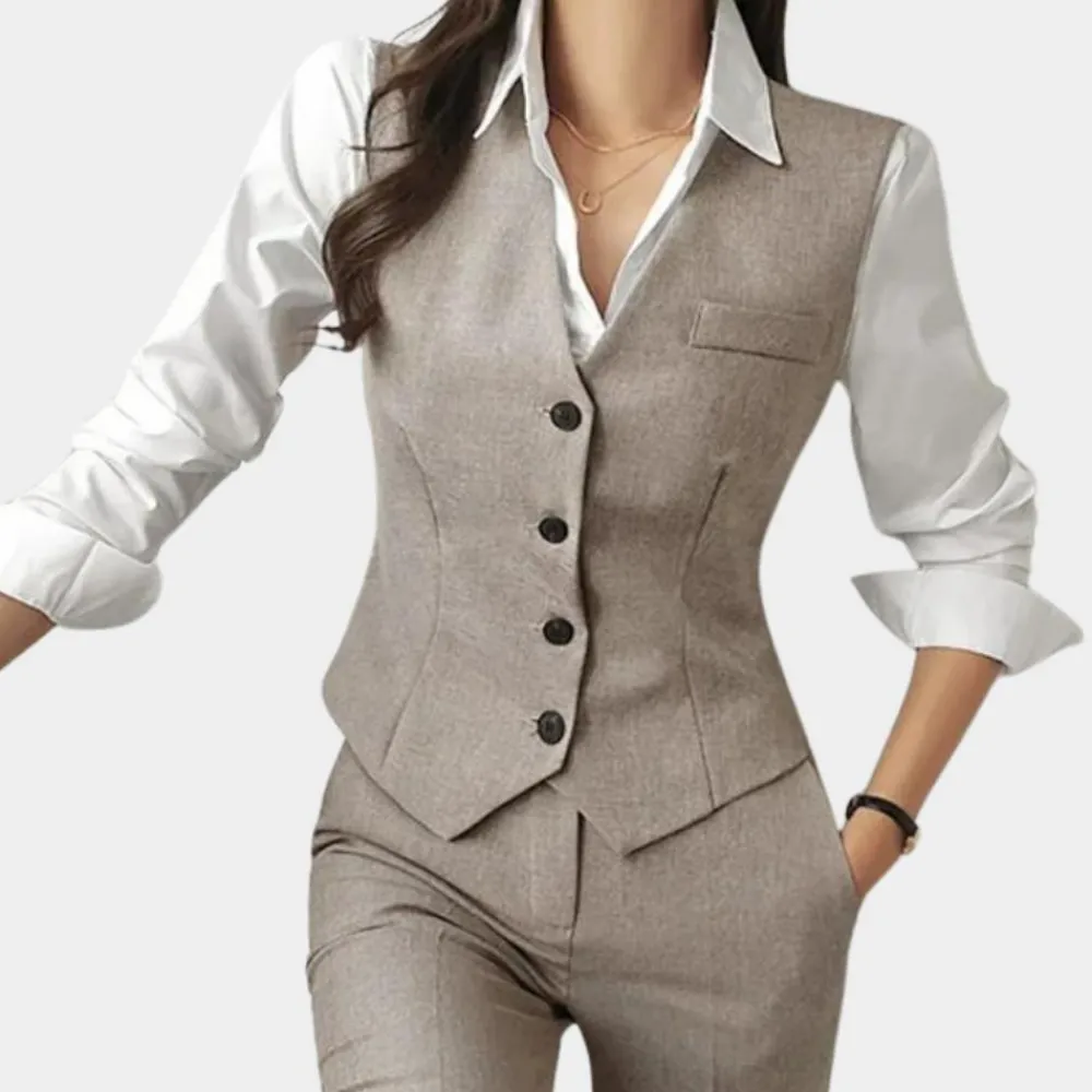 - Trendy en tijdloos: De klassieke combinatie van blazer, gilet en pantalon blijft altijd in de mode, waardoor dit damespak een lange tijd relevant blijft in je dameskleding collectie.