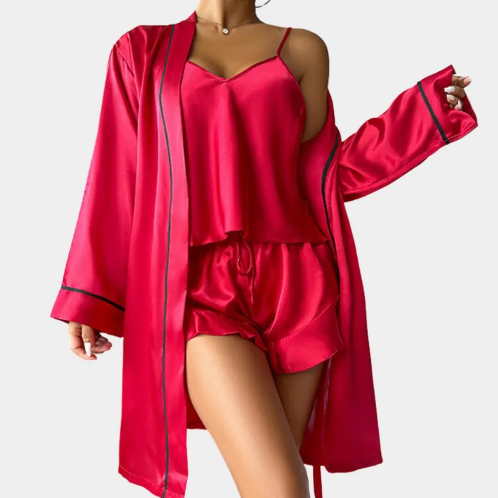Wikkel jezelf in luxe met de Elegante pyjamaset voor dames. De zachte satijnen stof en het elegante ontwerp zorgen voor een comfortabele en stijlvolle nachtrust.