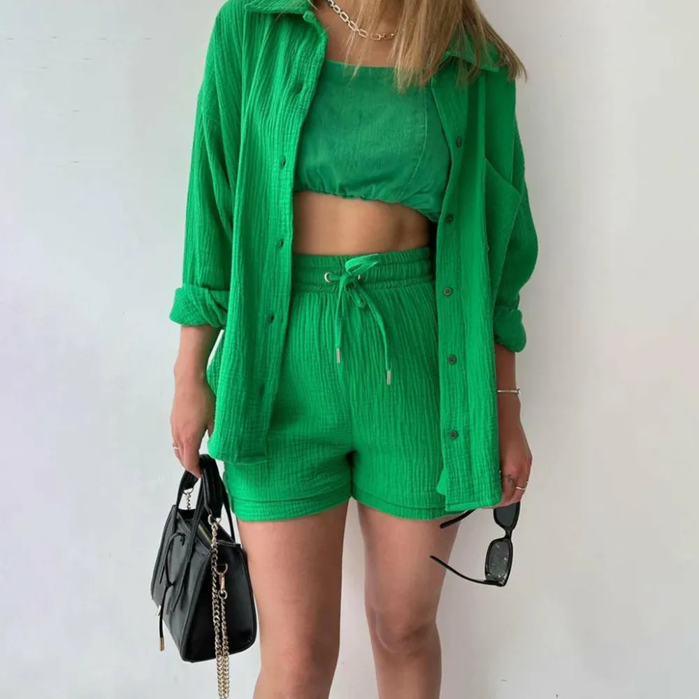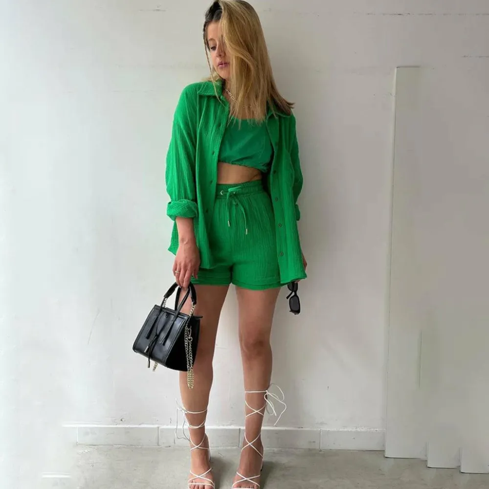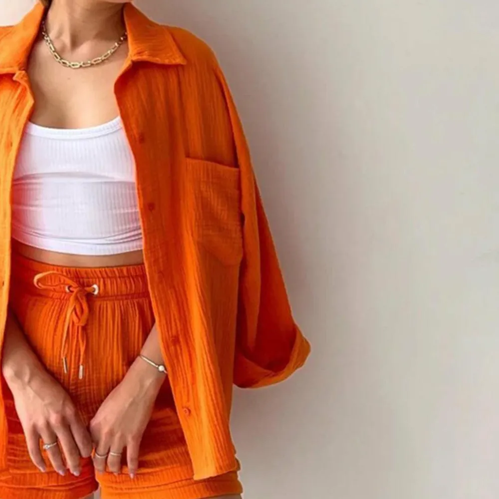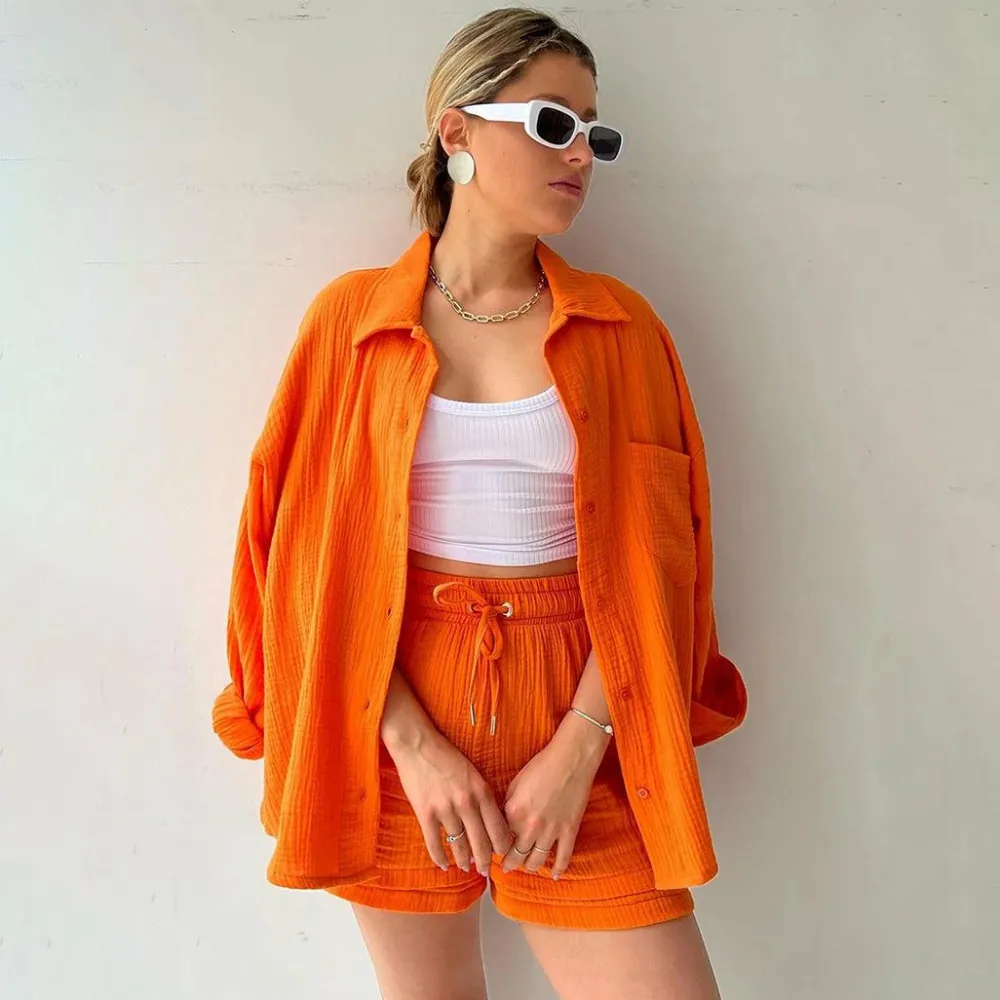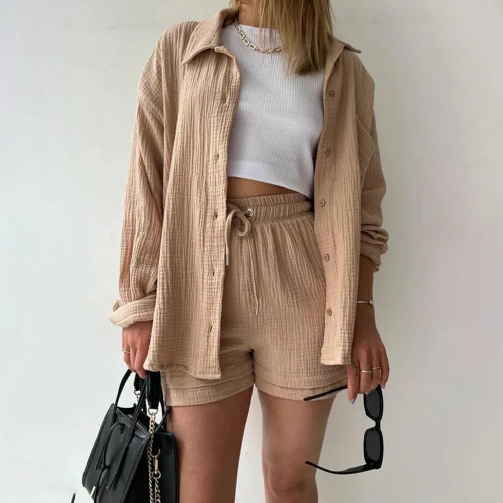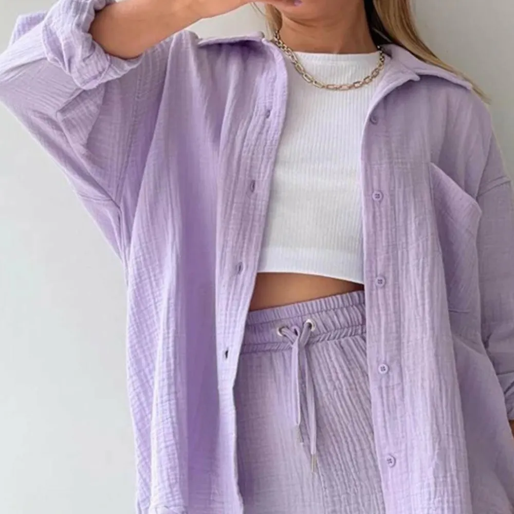 Deze set bestaat uit een stijlvol shirt met lange mouwen en een comfortabele short, gemaakt van hoogwaardige materialen die een luchtige en ademende textuur bieden. De set is perfect voor warme zomerdagen wanneer je er op je best uit wilt zien.