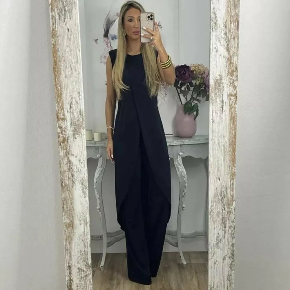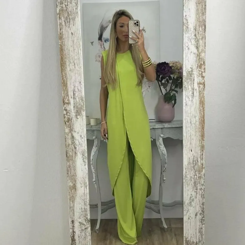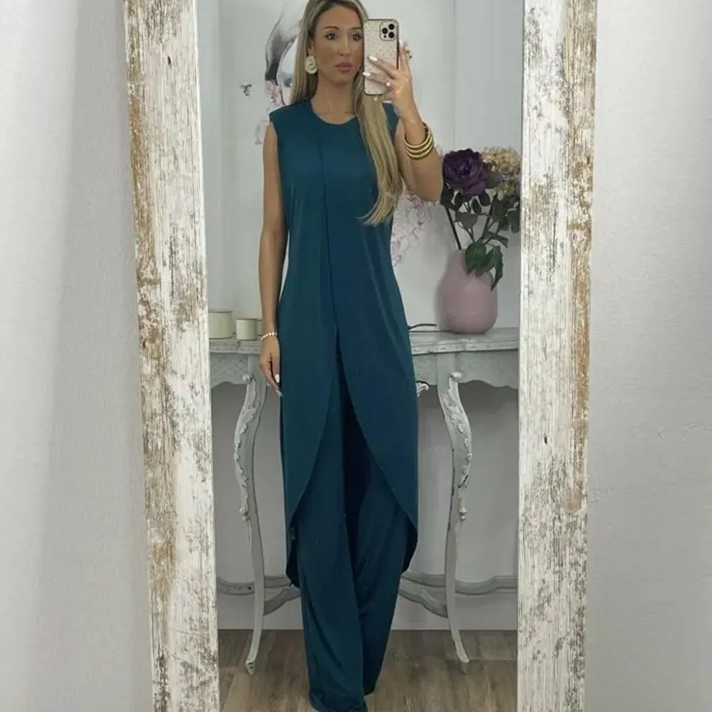Ben je het zat om dezelfde oude kleren te dragen die iedereen draagt? De JAMIE Modieuze set voor vrouwen biedt een frisse en unieke kijk op mode met zijn trendy tweedelige outfit! De mouwloze, lange top met boothals en bijpassende broek zijn een geweldig ensemble dat opvalt waar je ook gaat.