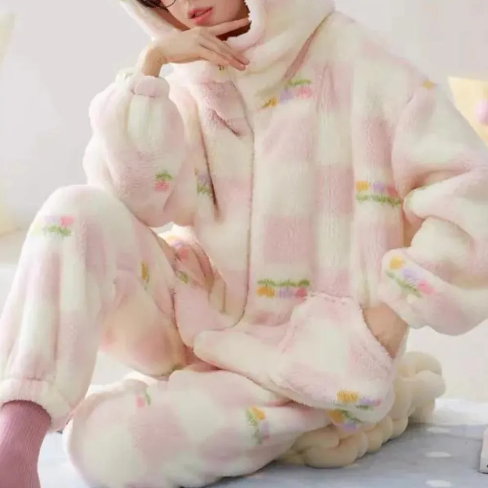 Blijf warm, ontspannen en moeiteloos stijlvol met de KAHLIA – Luxe Pyjamaset voor Dames – je ideale metgezel voor de avonden.