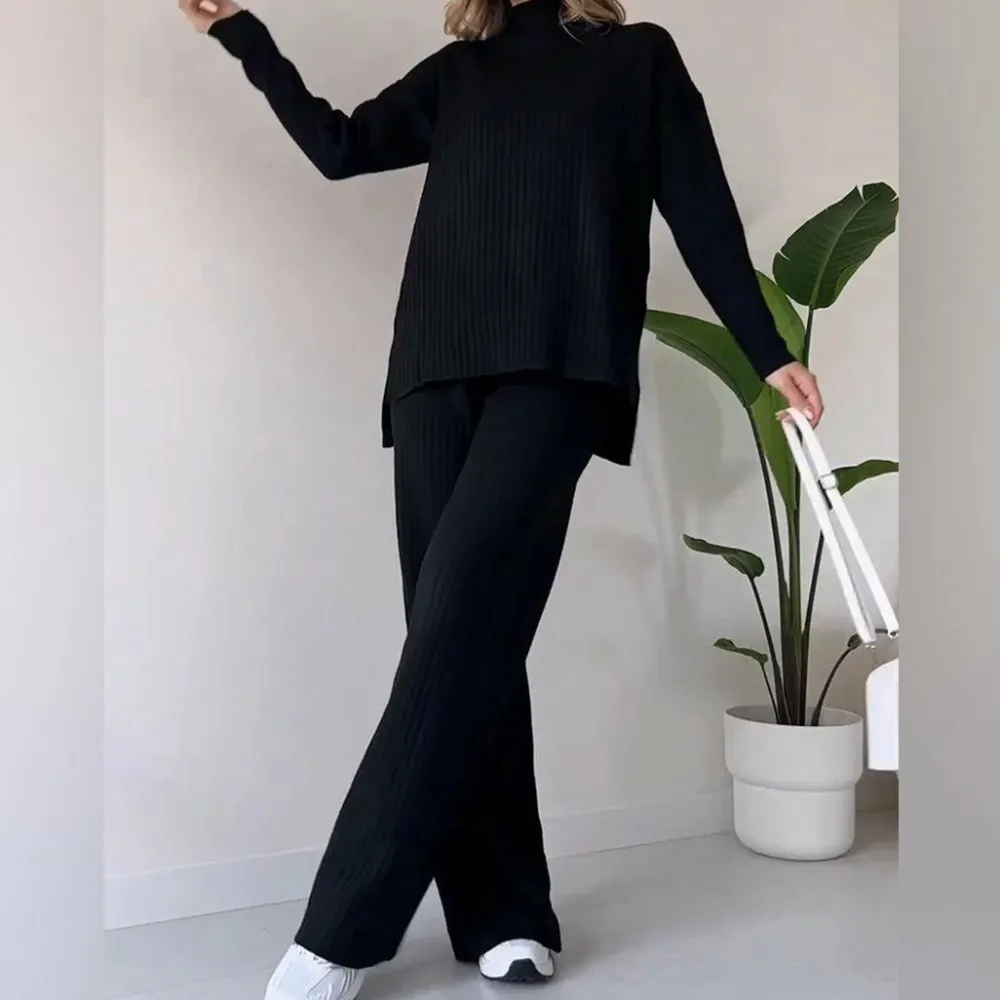Het zachte polyester breisel beweegt en vormt met je mee om je comfortabel te houden. Het eigentijdse color-block patroon trekt de aandacht. Laat je flair zien en wissel gemakkelijk van werk naar spel in deze aanpasbare tweedelige set. De relaxte stijl past bij casual vrijdagen op het werk of brunchafspraken met vrienden. Waar je ook heengaat, je ziet er fantastisch uit en voelt je ook zo.