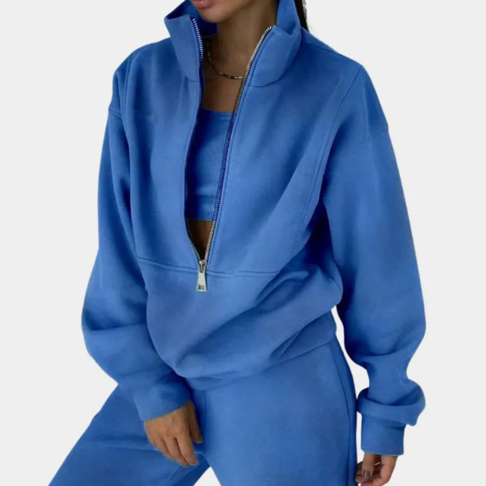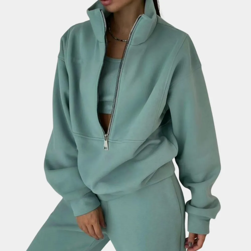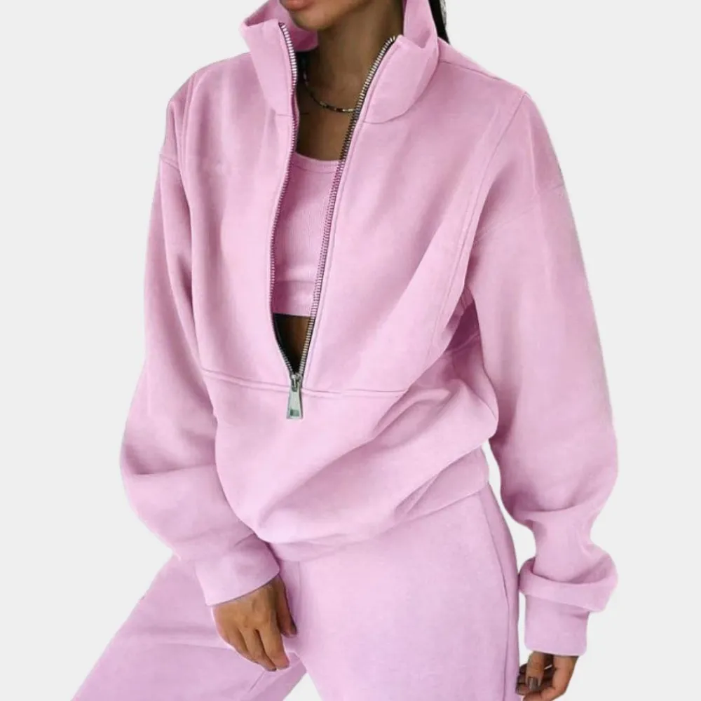 Ontdek het Keelin tweedelig joggingpak voor dames, bestaande uit een trendy en een vest met halve rits. Verkrijgbaar in stijlvolle kleuren zoals roze, groen en blauw, is dit joggingpak dames de ideale keuze voor een luxe en comfortabele uitstraling.