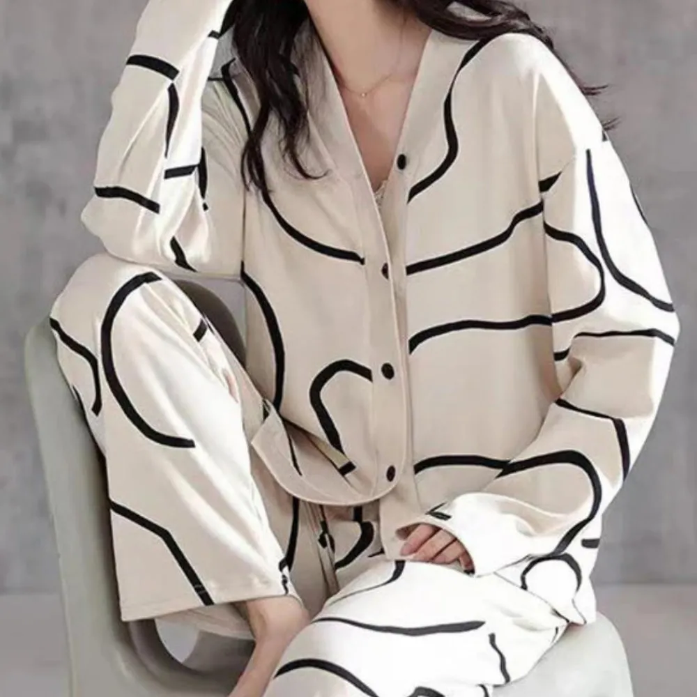 Maak kennis met de KIMBERLY – Luxe Pyjamaset voor Dames, de ideale keuze voor een comfortabele en stijlvolle nachtrust. Deze set is perfect voor wie op zoek is naar ultieme ontspanning met een modieuze uitstraling.