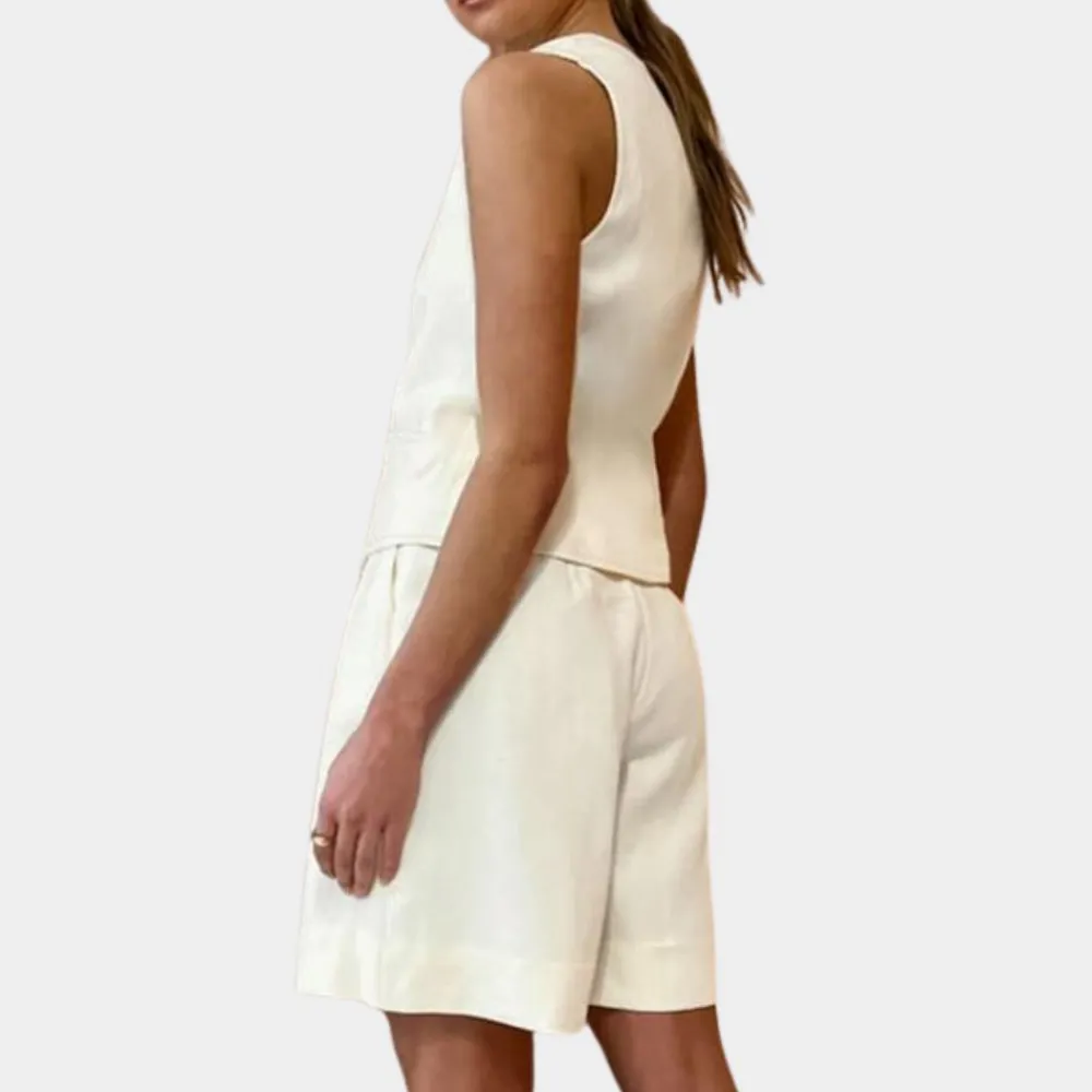 Catarina Set veelzijdige vesten en shorts voor dames is vakkundig vervaardigd uit een luxe mix van hoogwaardige stoffen, die zorgen voor een lichtgewicht en ademend gevoel dat essentieel is voor de warmere dagen. De Catarina Set veelzijdige vesten en shorts voor dames is ontworpen met veel aandacht voor detail, waaronder een verfijnde pasvorm die zowel comfort als stijl accentueert. Deze set biedt veelzijdige stylingopties die je garderobe zullen verbeteren, of je hem nu draagt als een ensemble of individueel mengt en matcht met andere stukken.