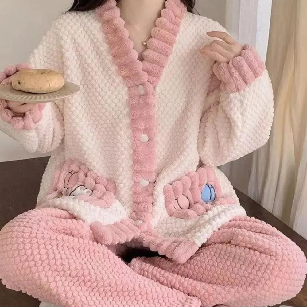 De hoogwaardige materialen van de Vivien Warme en Comfortabele Pyjamaset voor Dames zorgen ervoor dat het dagelijks comfortabel gedragen kan worden.